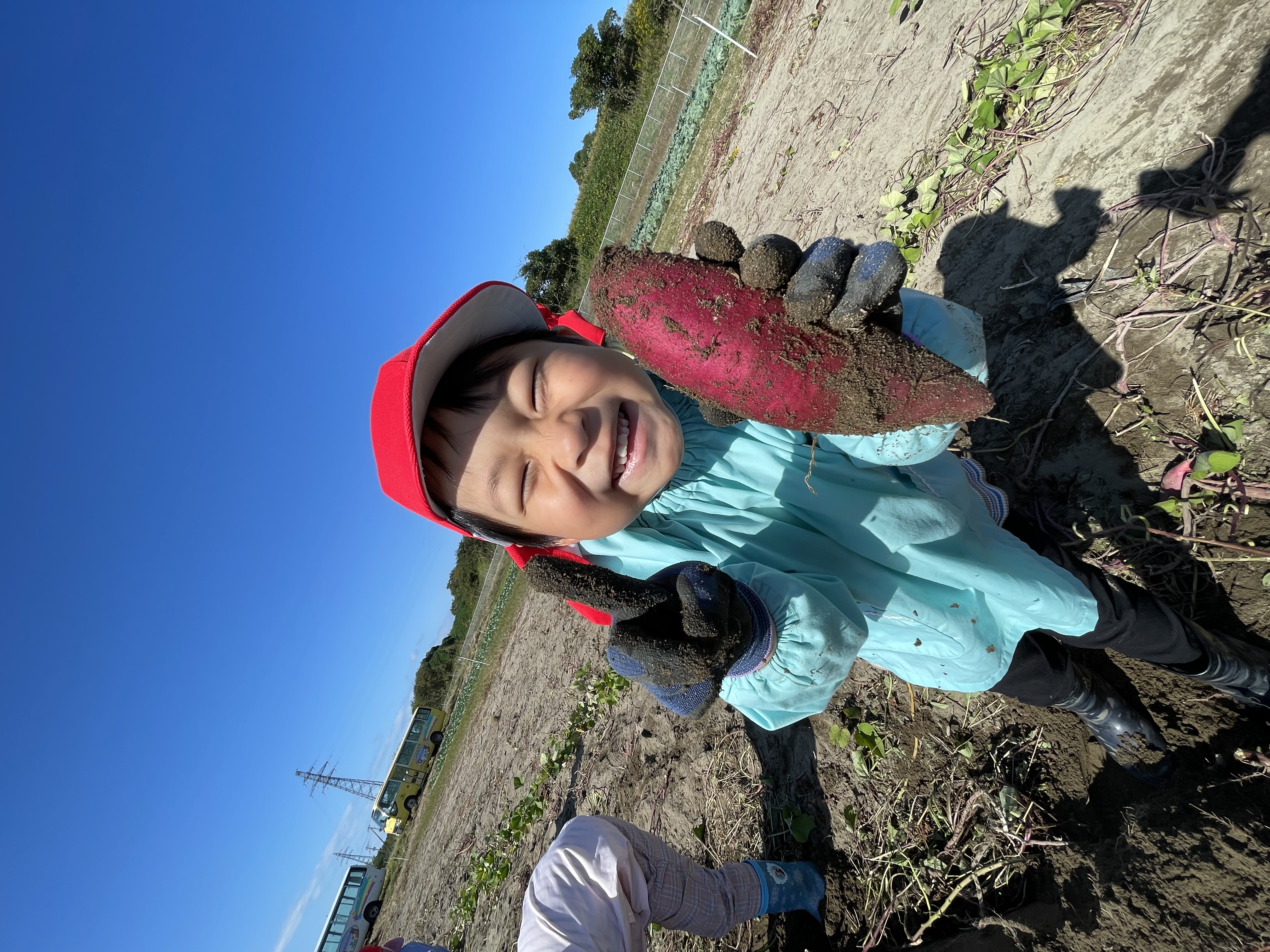 一生懸命土を掘っていくと様々なお芋が出てきました♪子ども達は「大きなお芋取れたよ〜」「細長いお芋!!ヘビみたい!!」と言いながら収穫を楽しんでいました😊