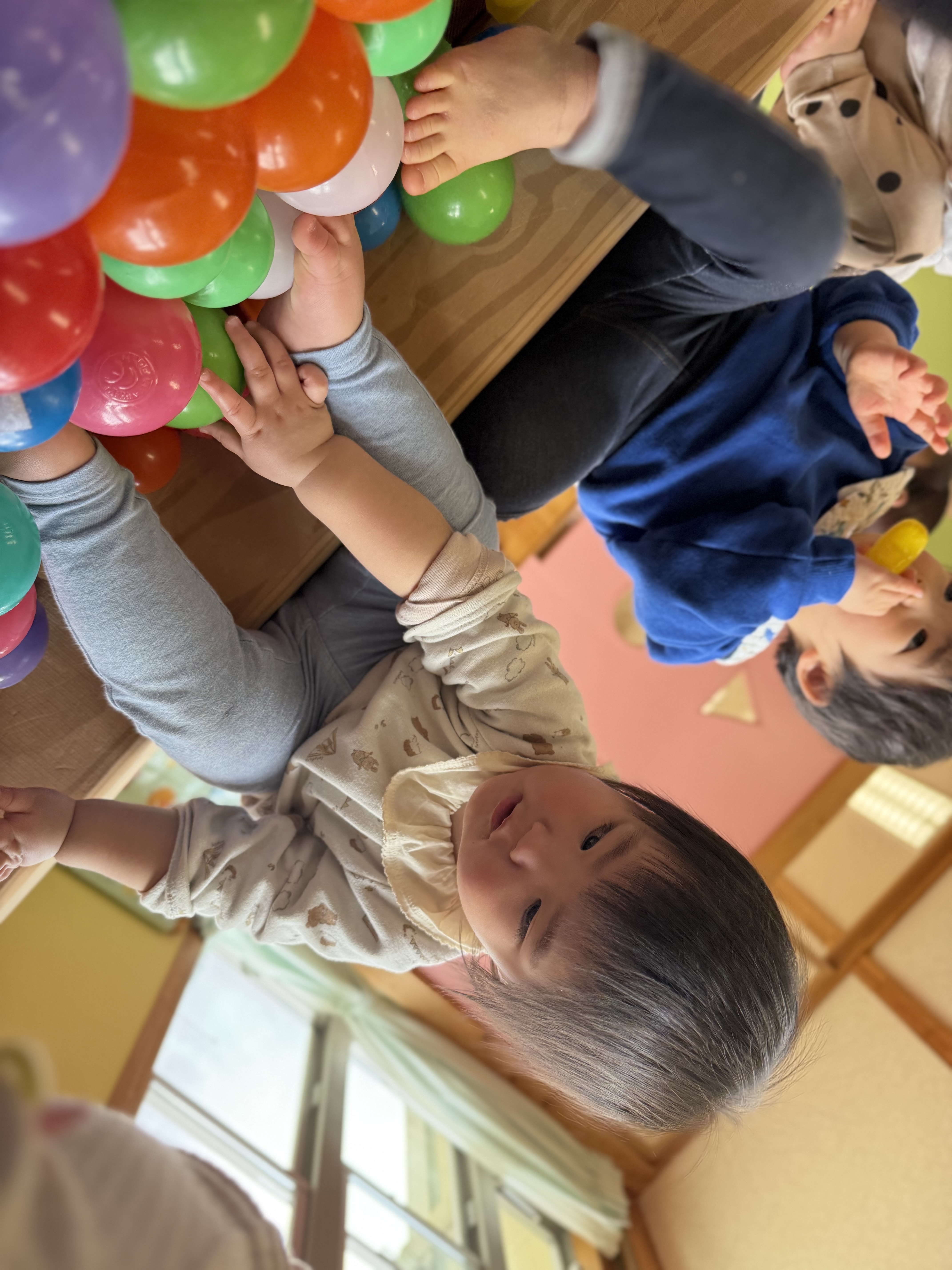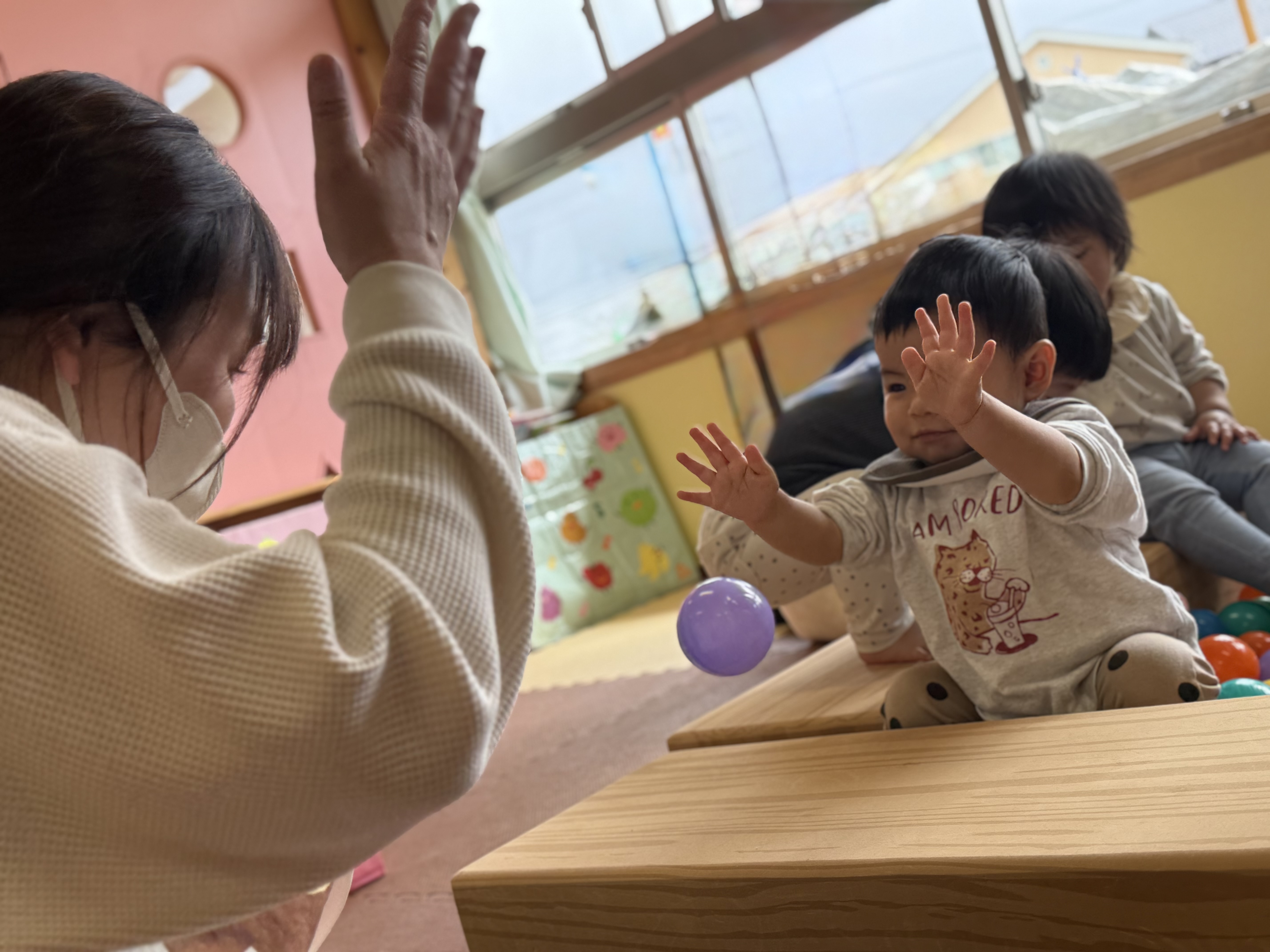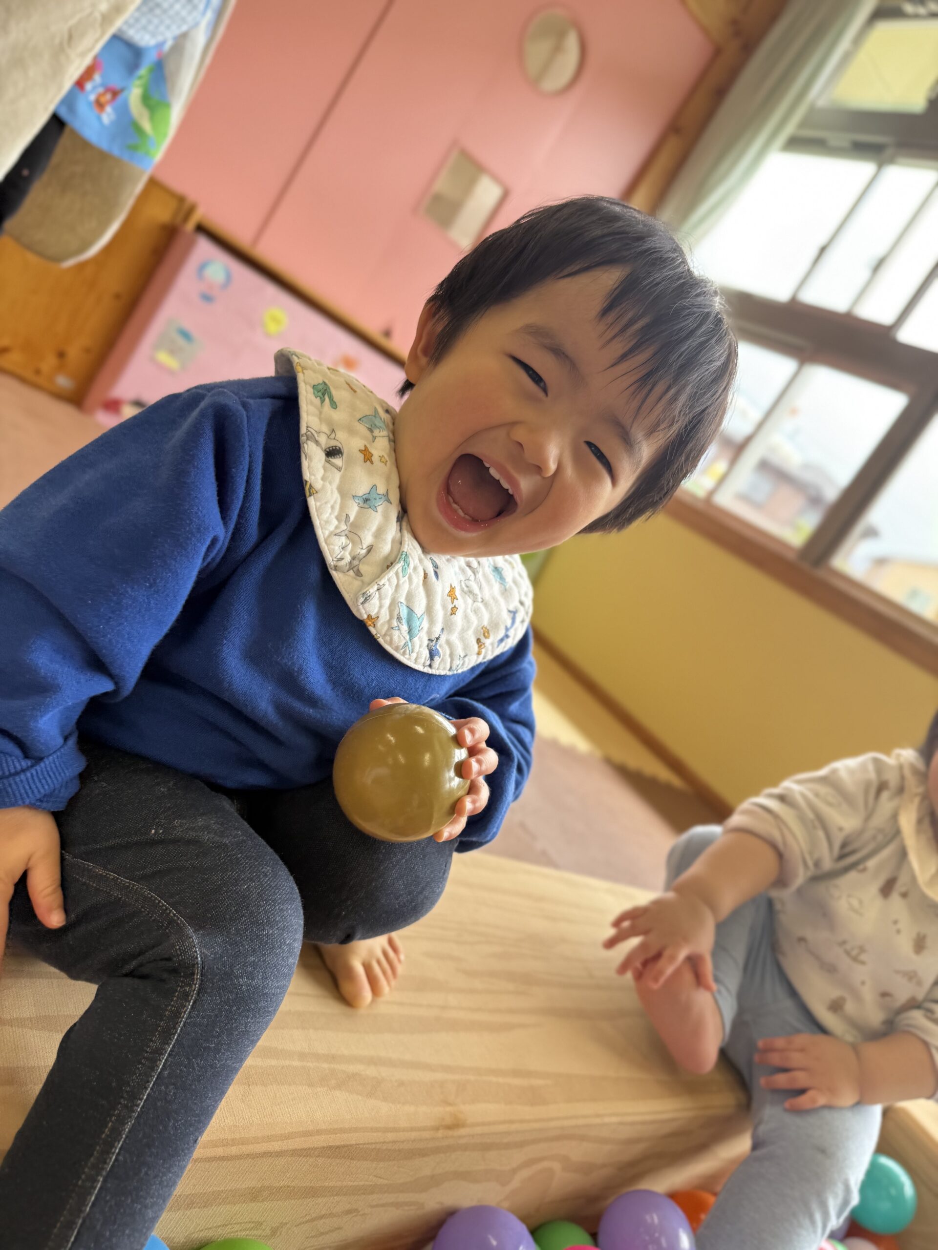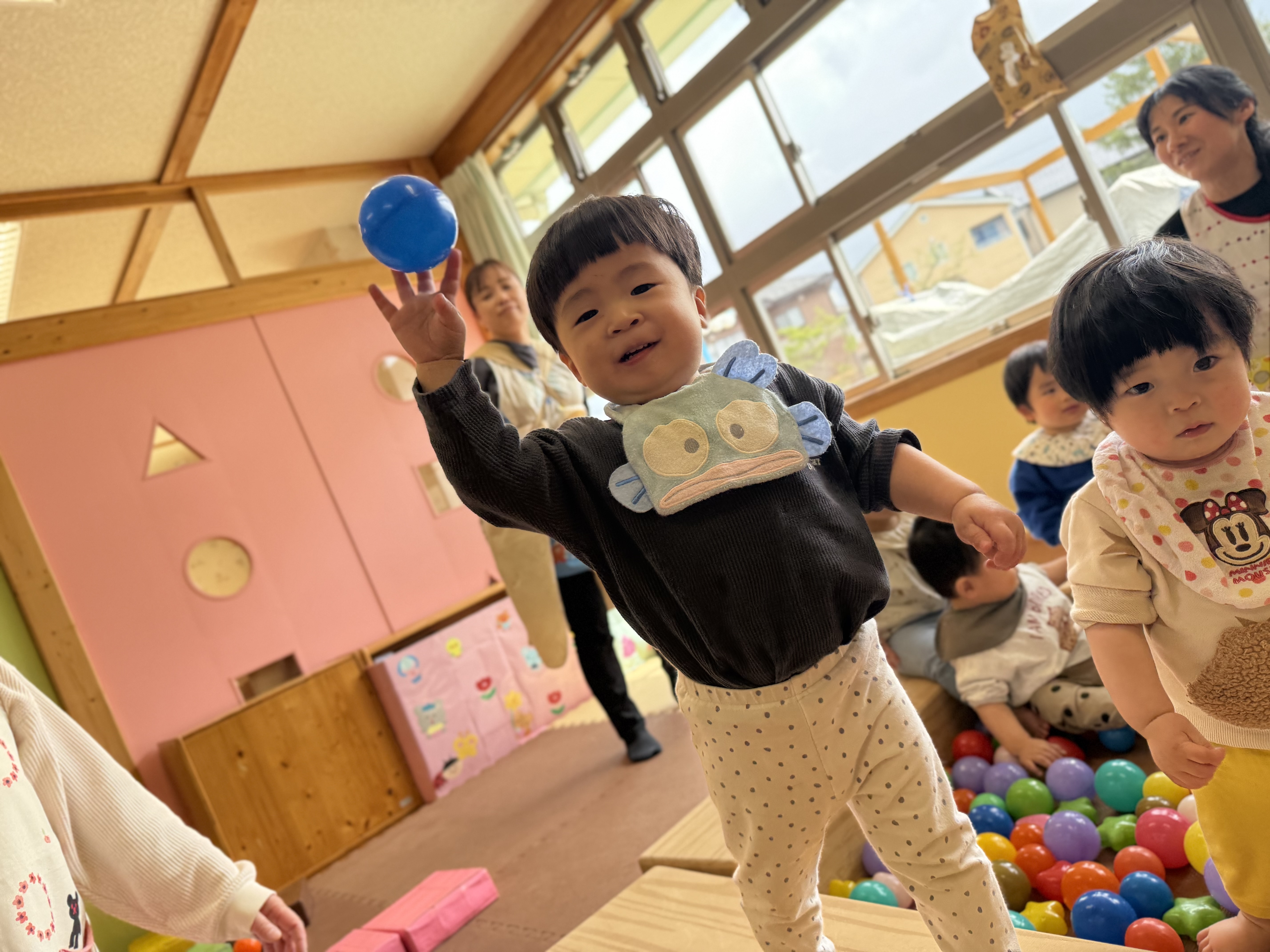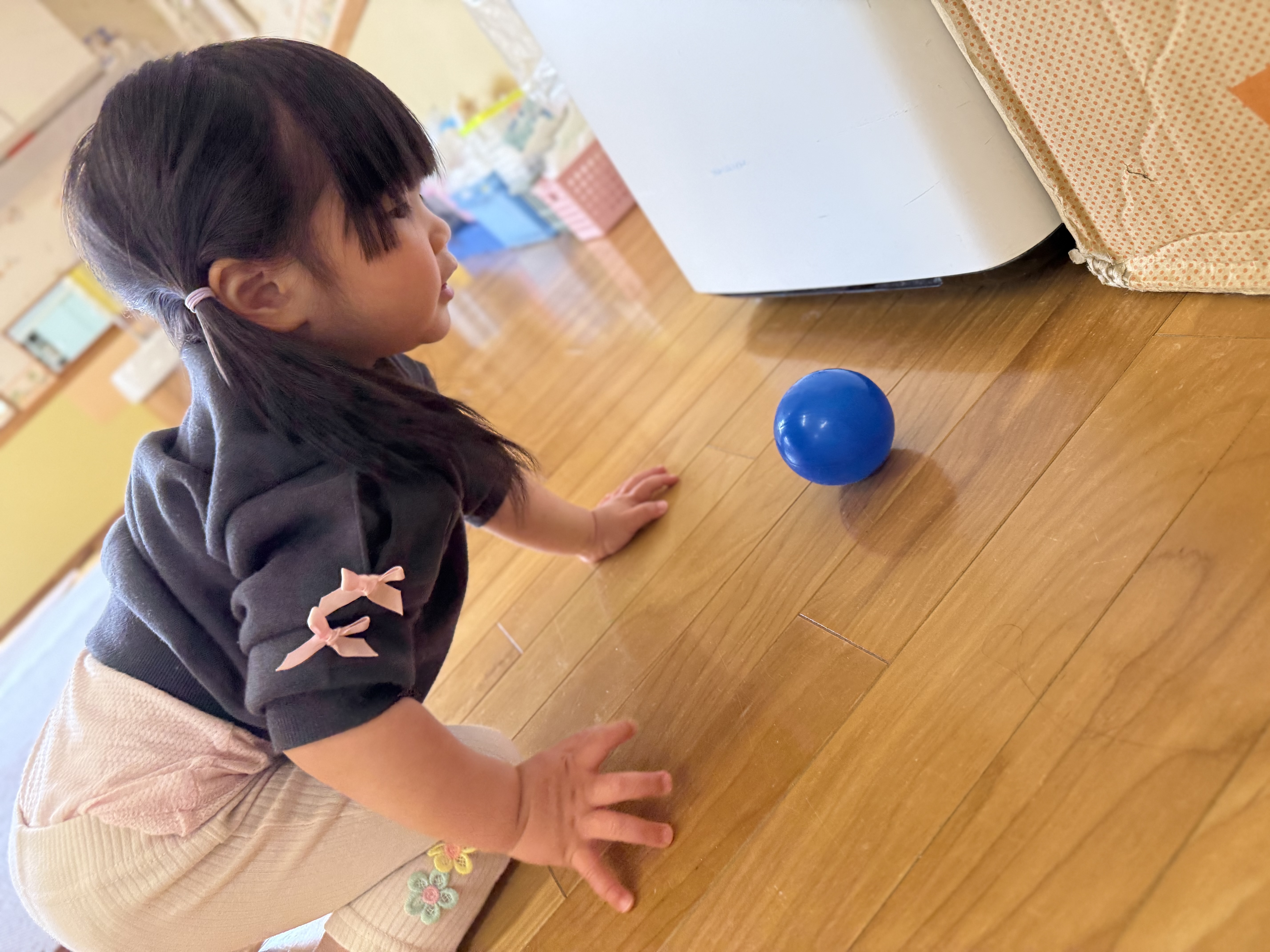 「コロコロ〜」と転がったボールを追いかけて取りに行ったりと喜んでボールあそびを楽しんでいました🎵