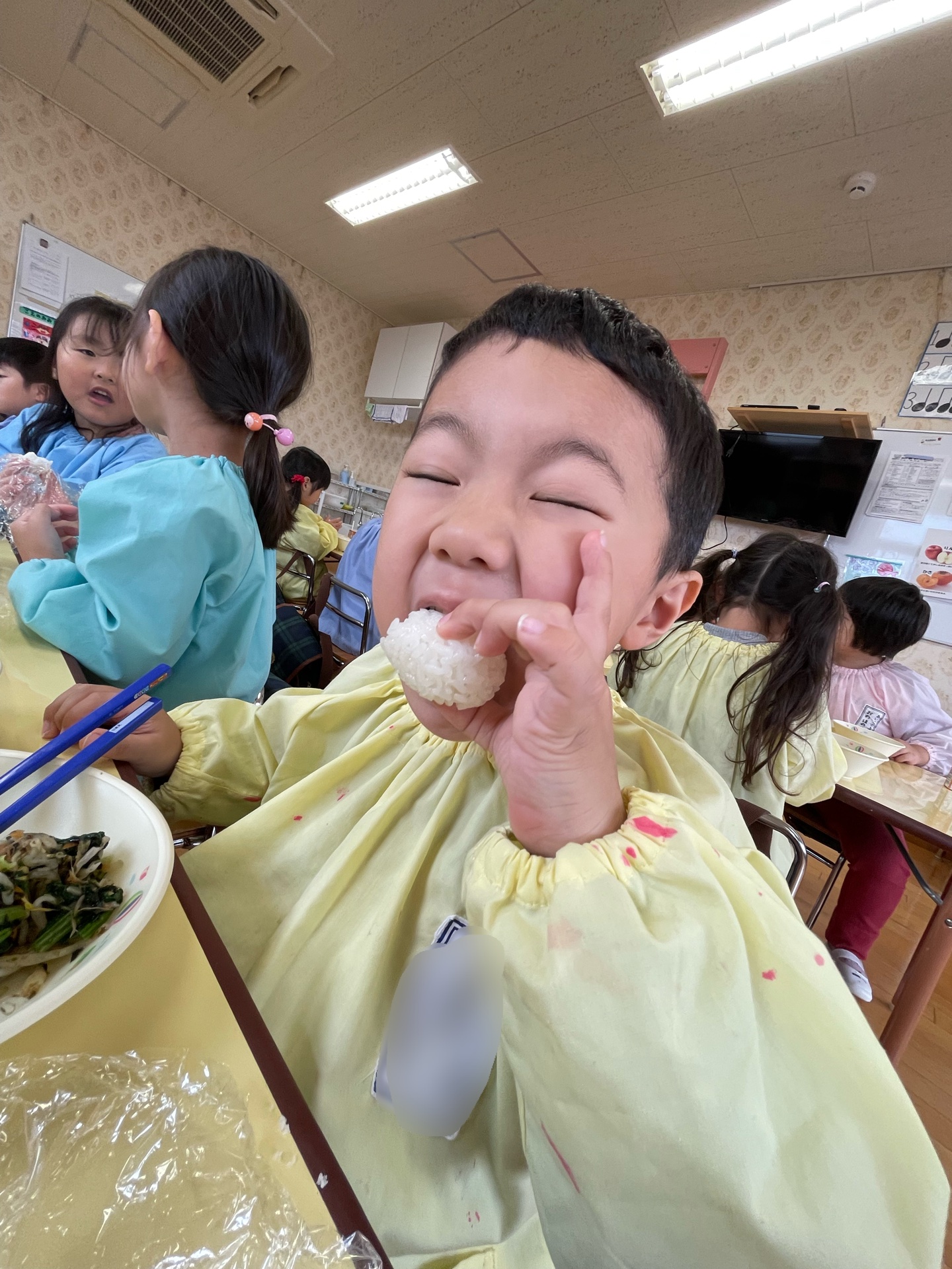 子ども達は自分たちの手で研いで炊いたご飯をおにぎりにして食べると「美味しい♡」「あまーい♡」とにっこりした表情でした😋