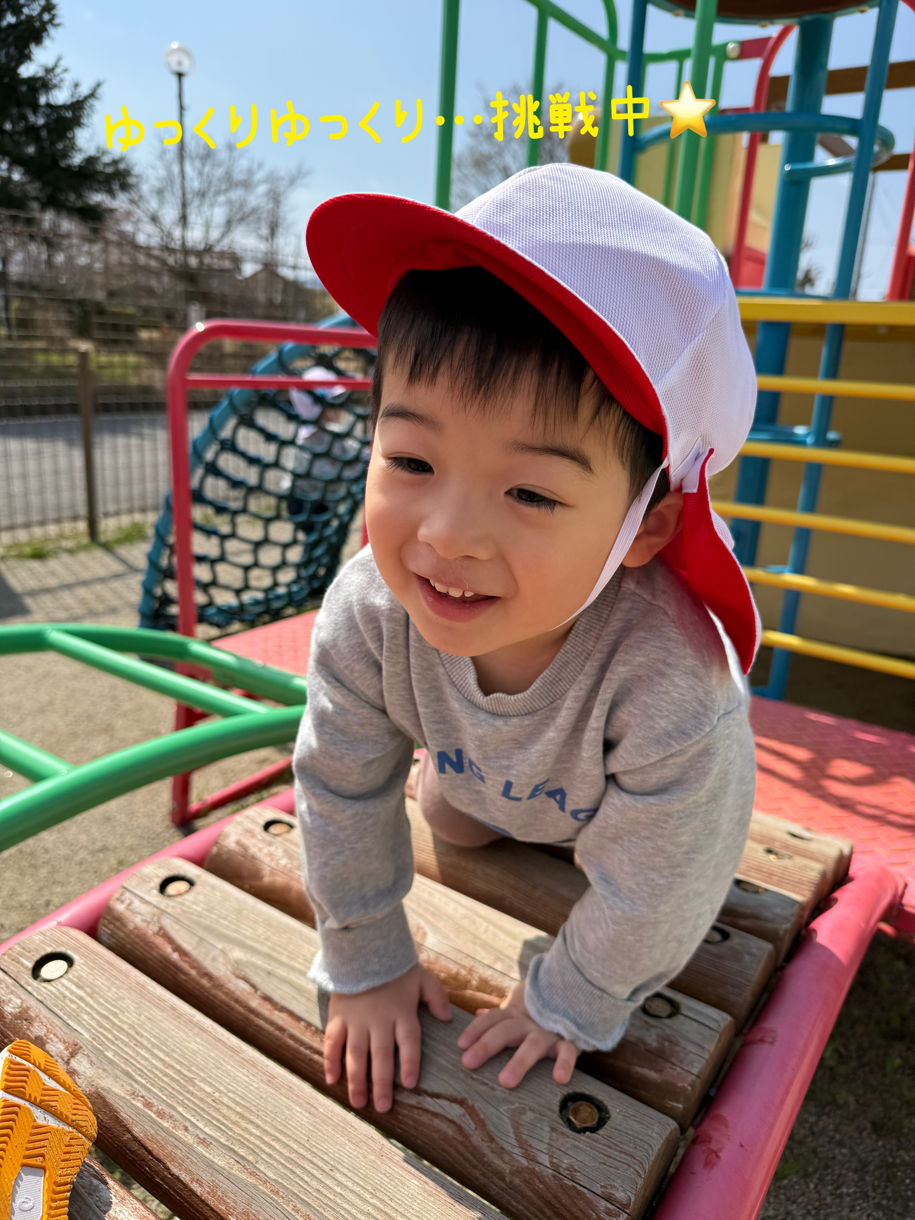見つけて春を感じたり、大型遊具に挑戦してみたりと楽しんであそんで