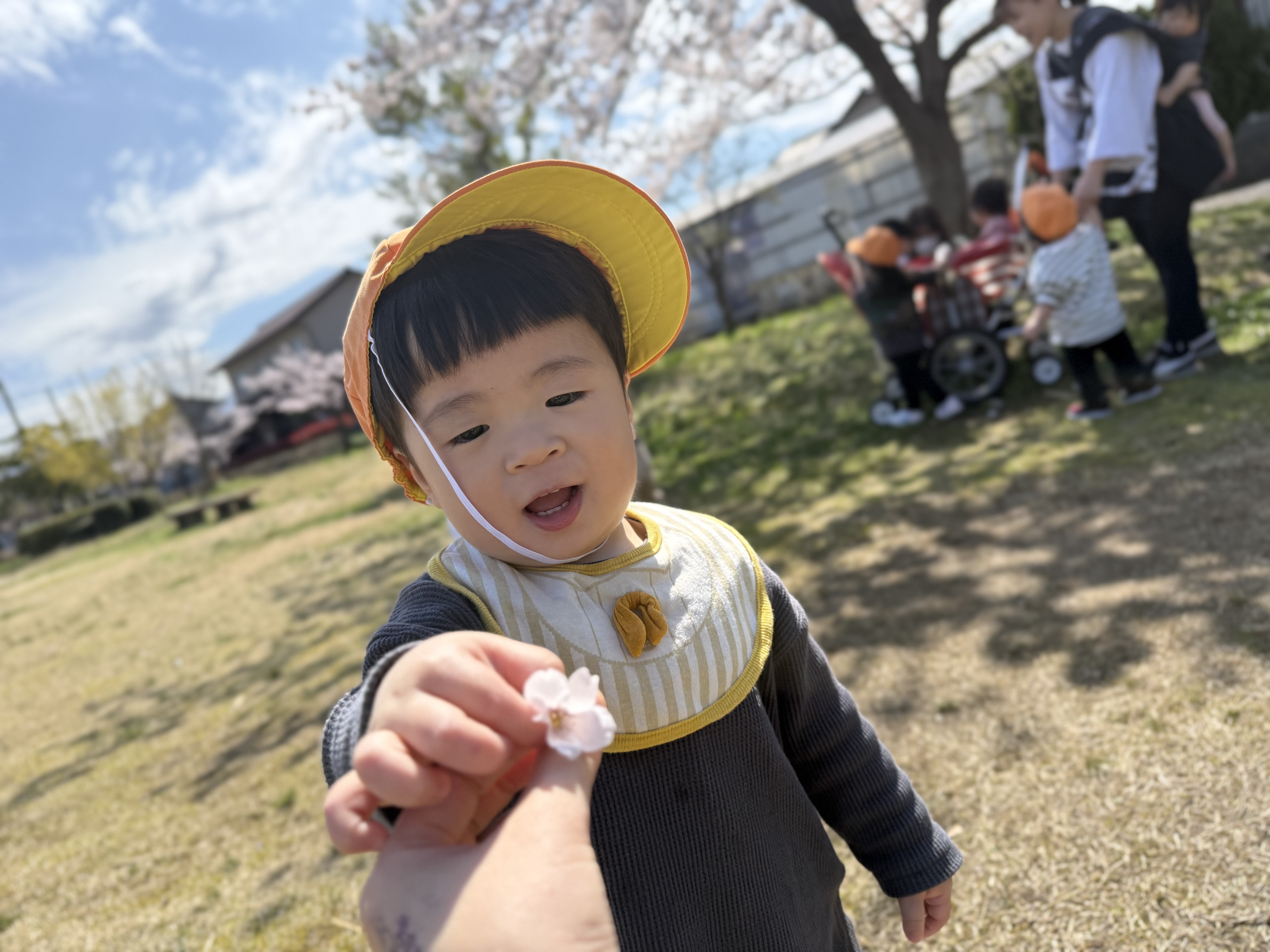 日の出公園までお散歩に行ってきました。保育者と一緒にサクラやつくしなど・・・✨
