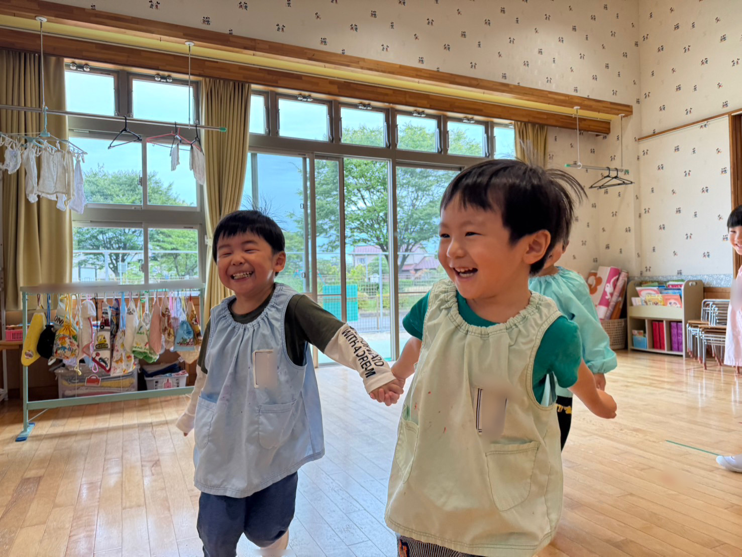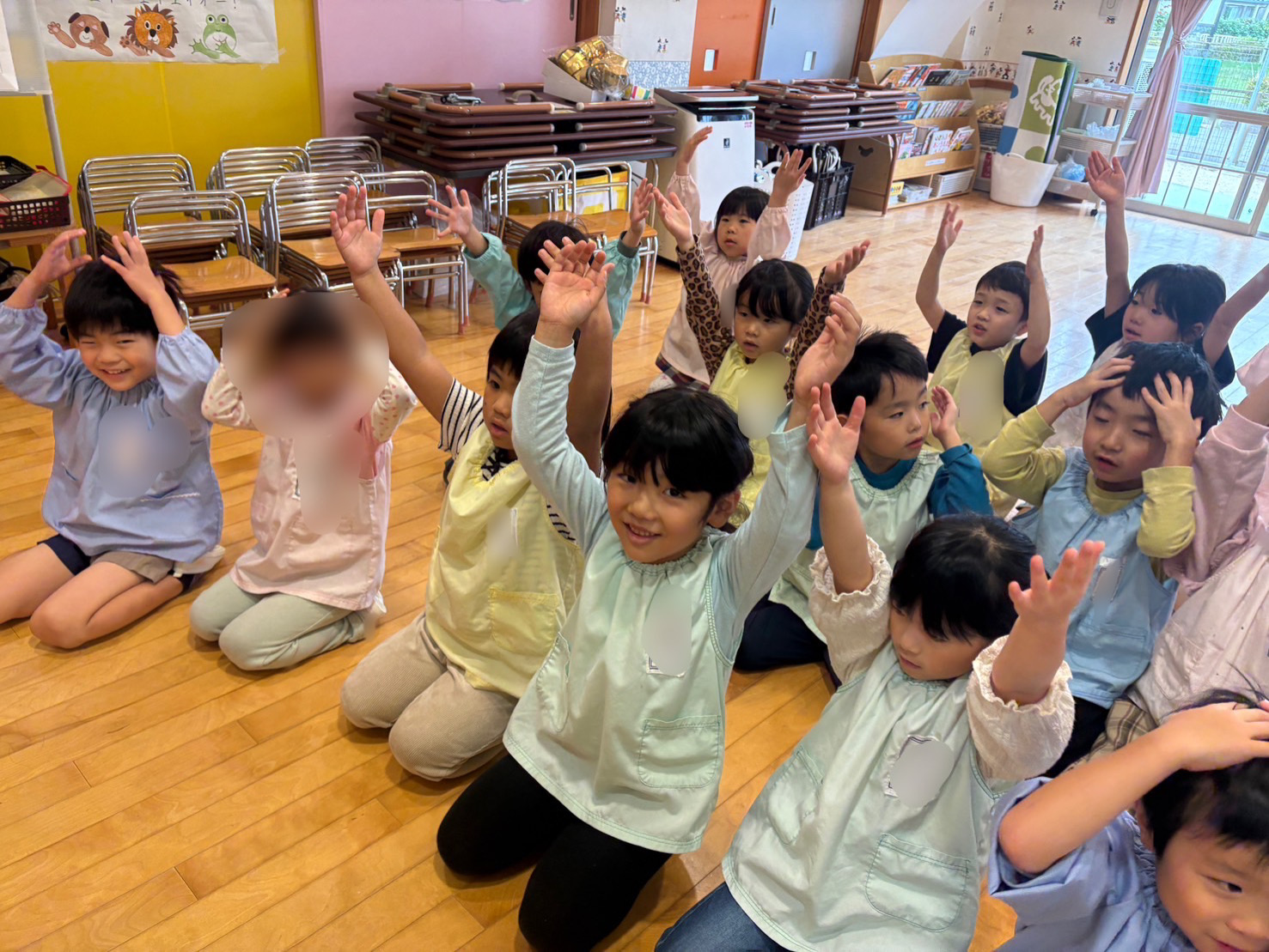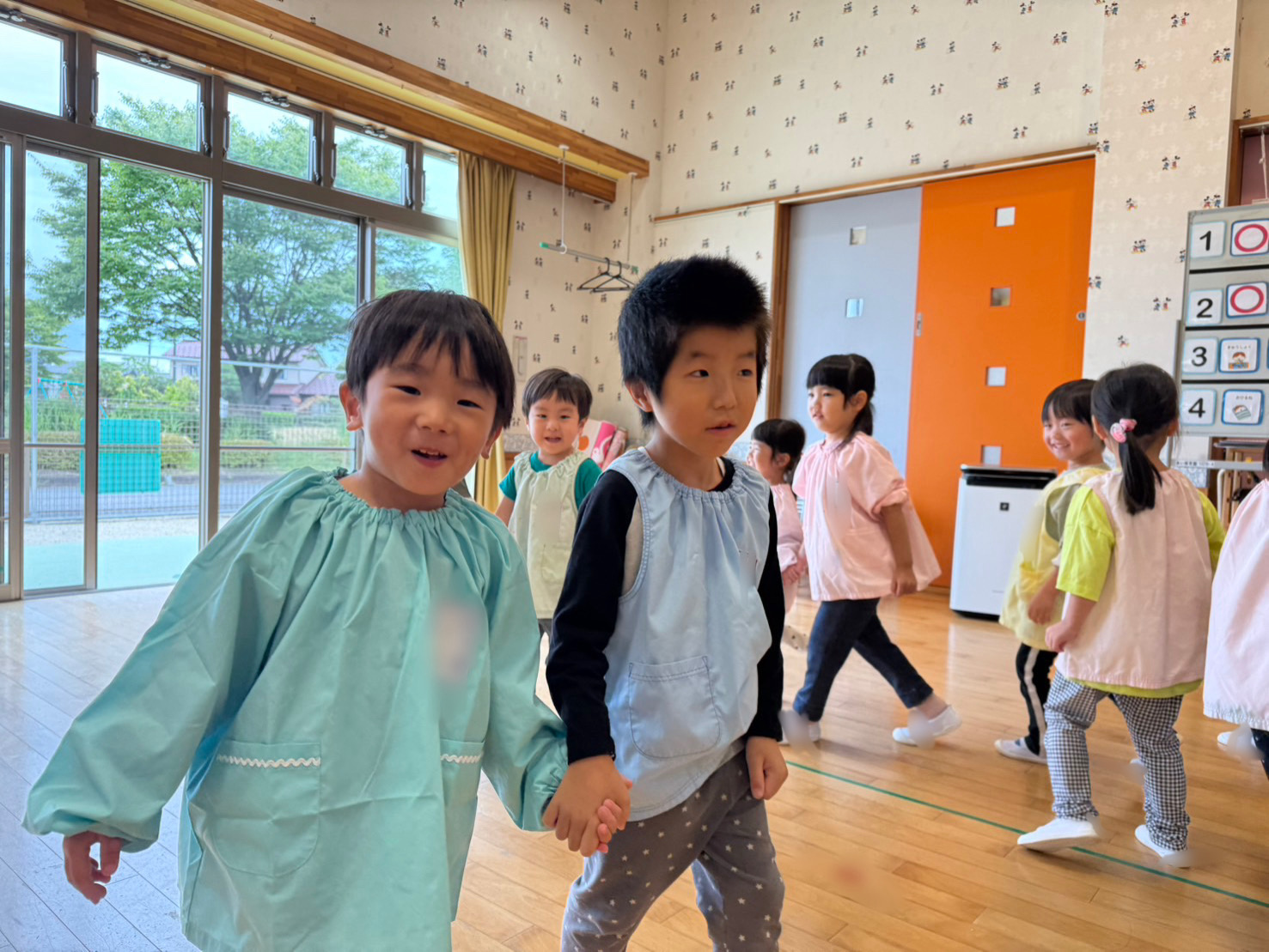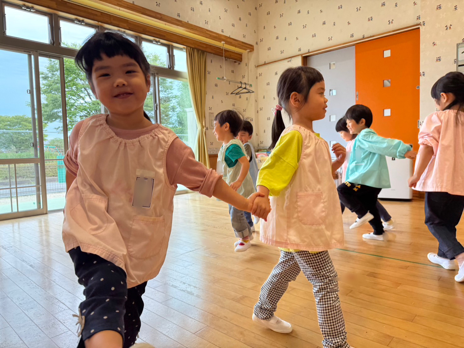 今月は子どもたちの大好きな秋のうた「どんぐりころころ♪」のピアノに合わせて、歌いながら2人1組で体を動かしました♪