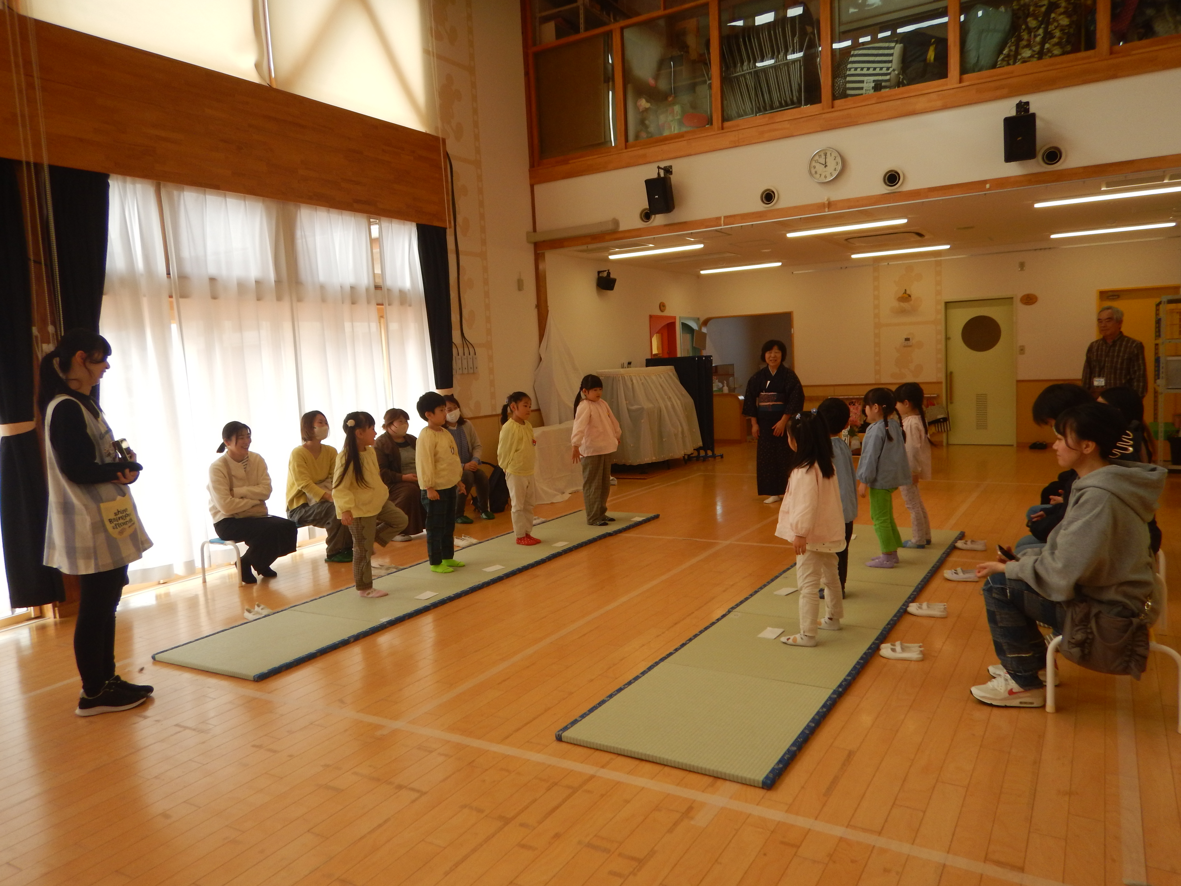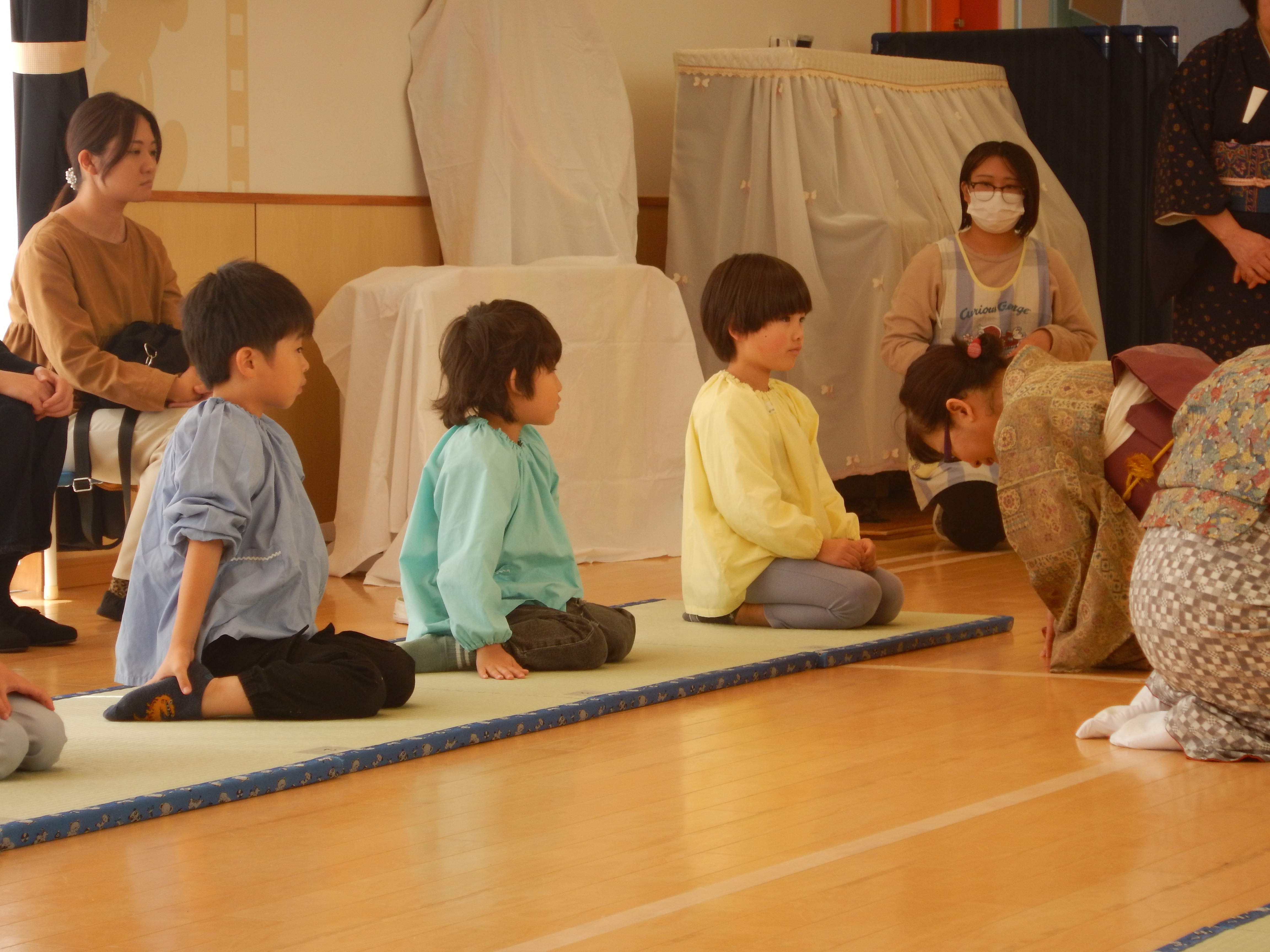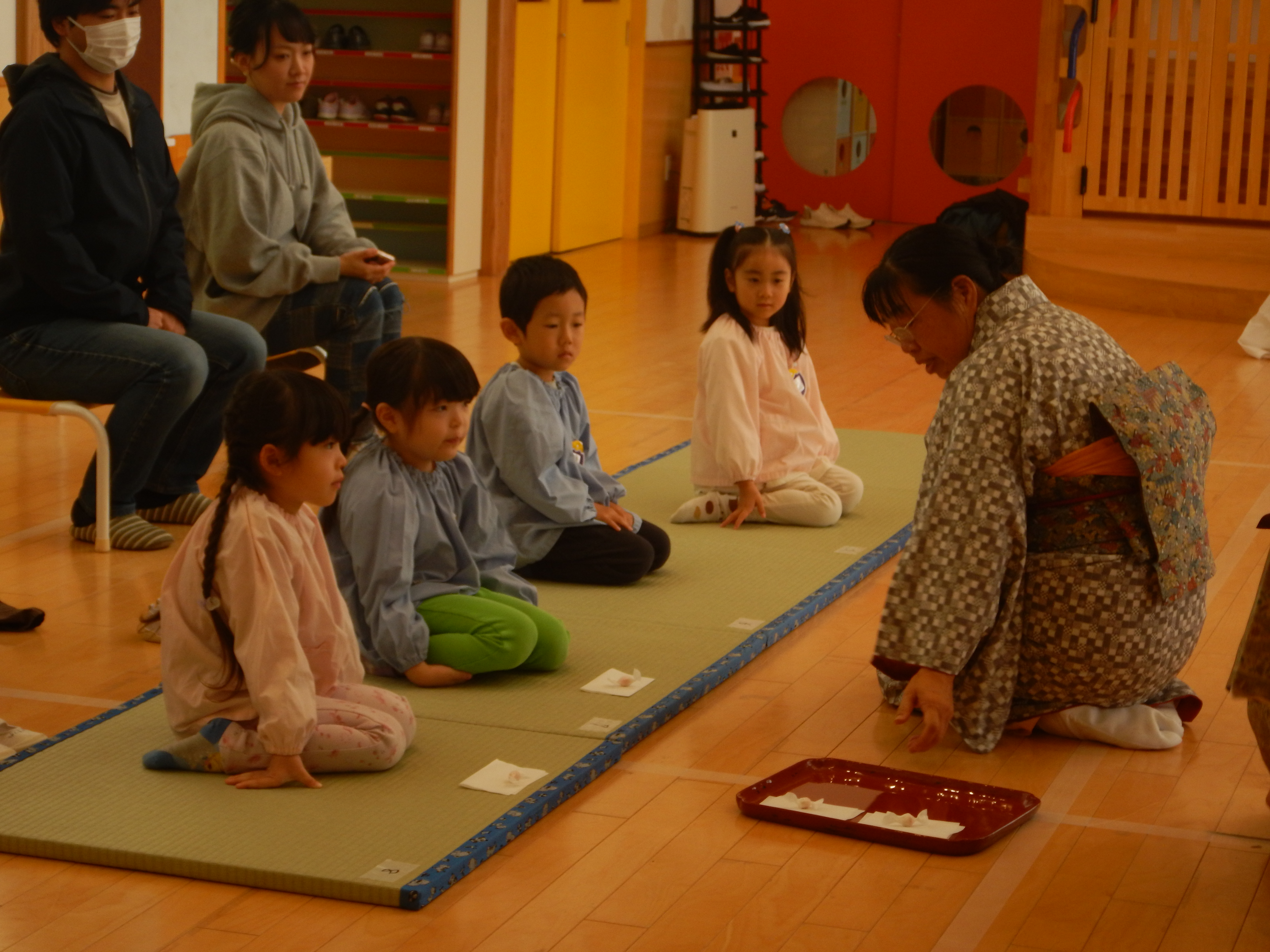 地域の方に作法を教えてもらいました。慣れない正座と初めての作法に緊張した子どもたち。
