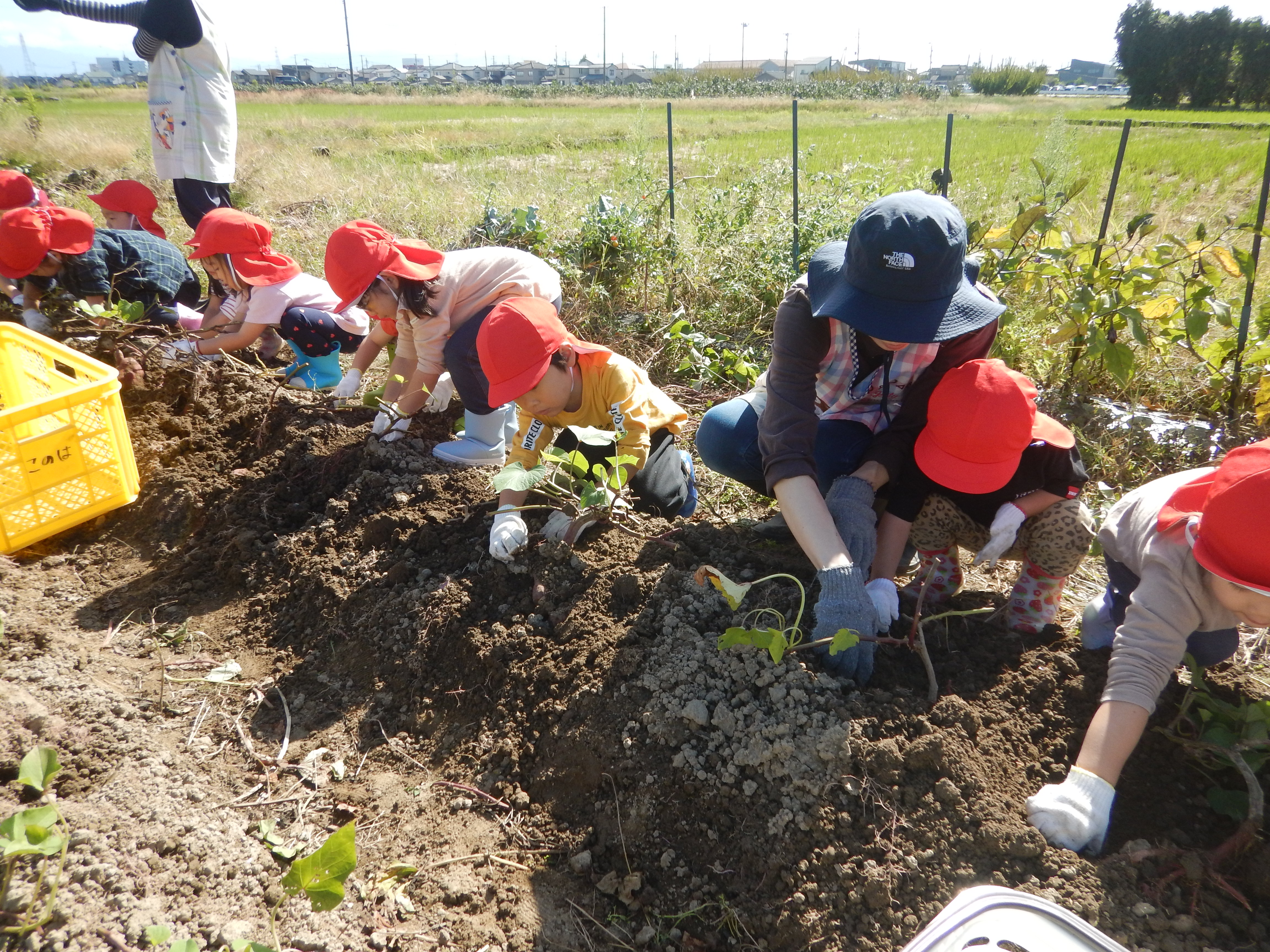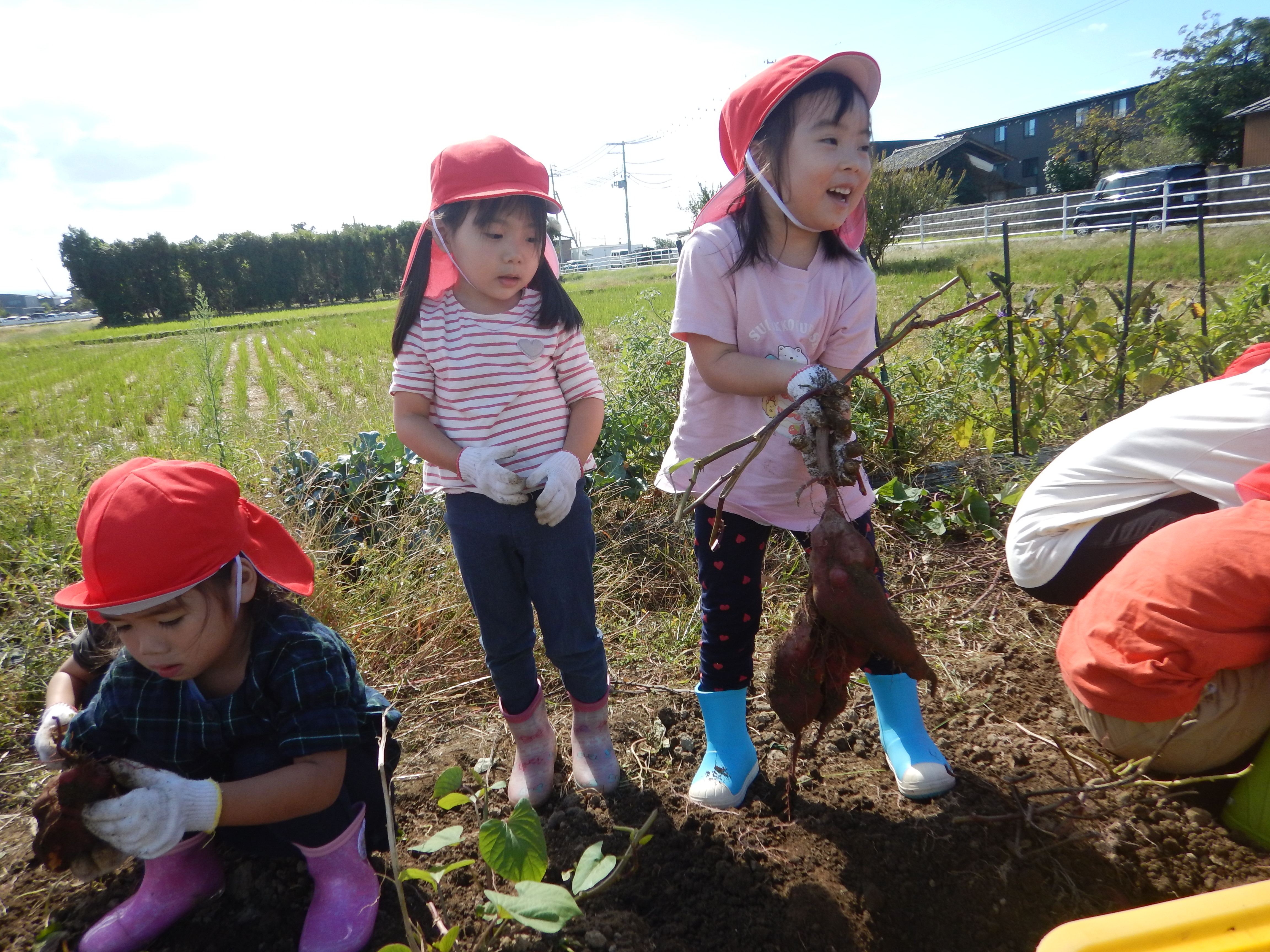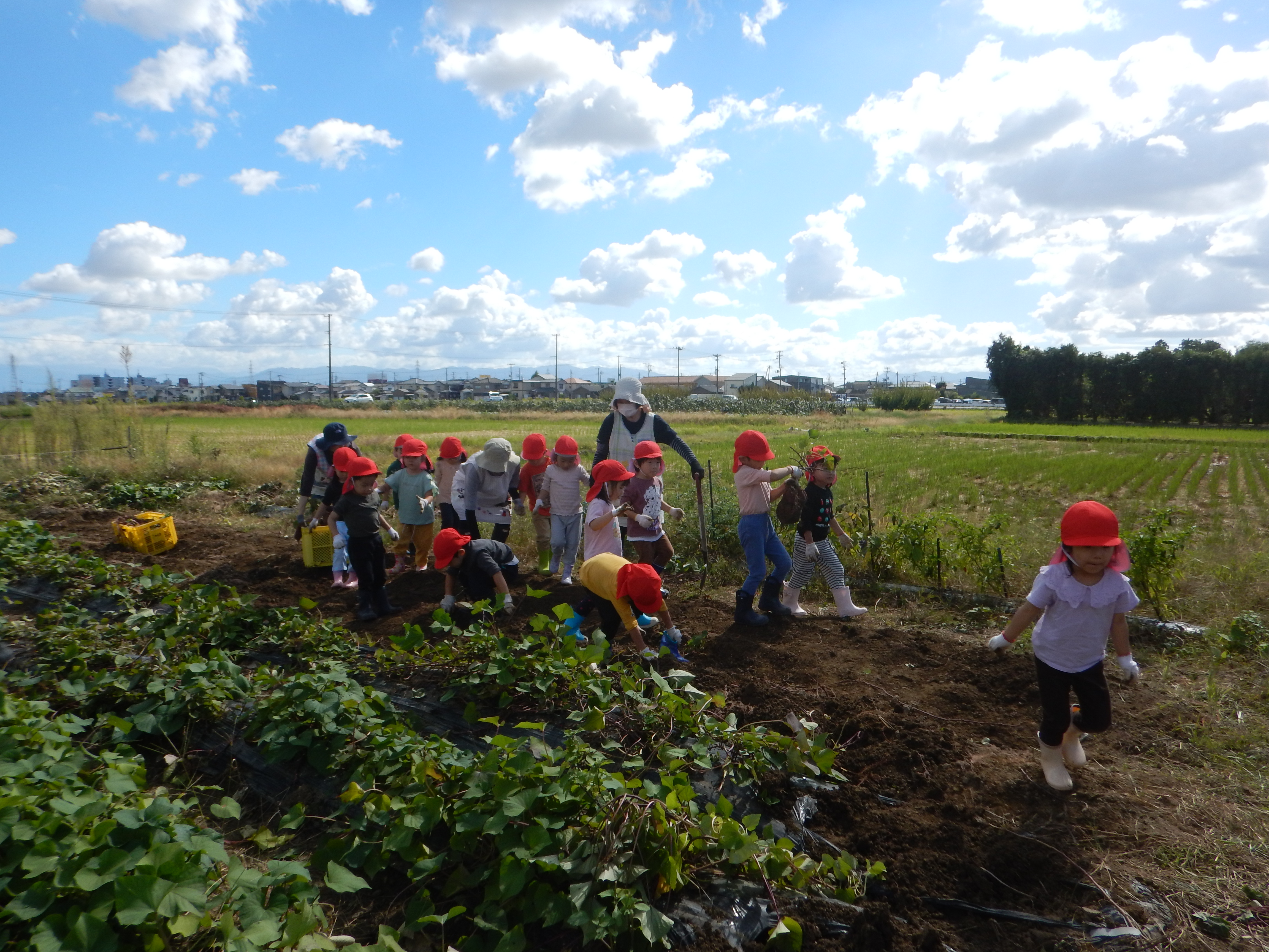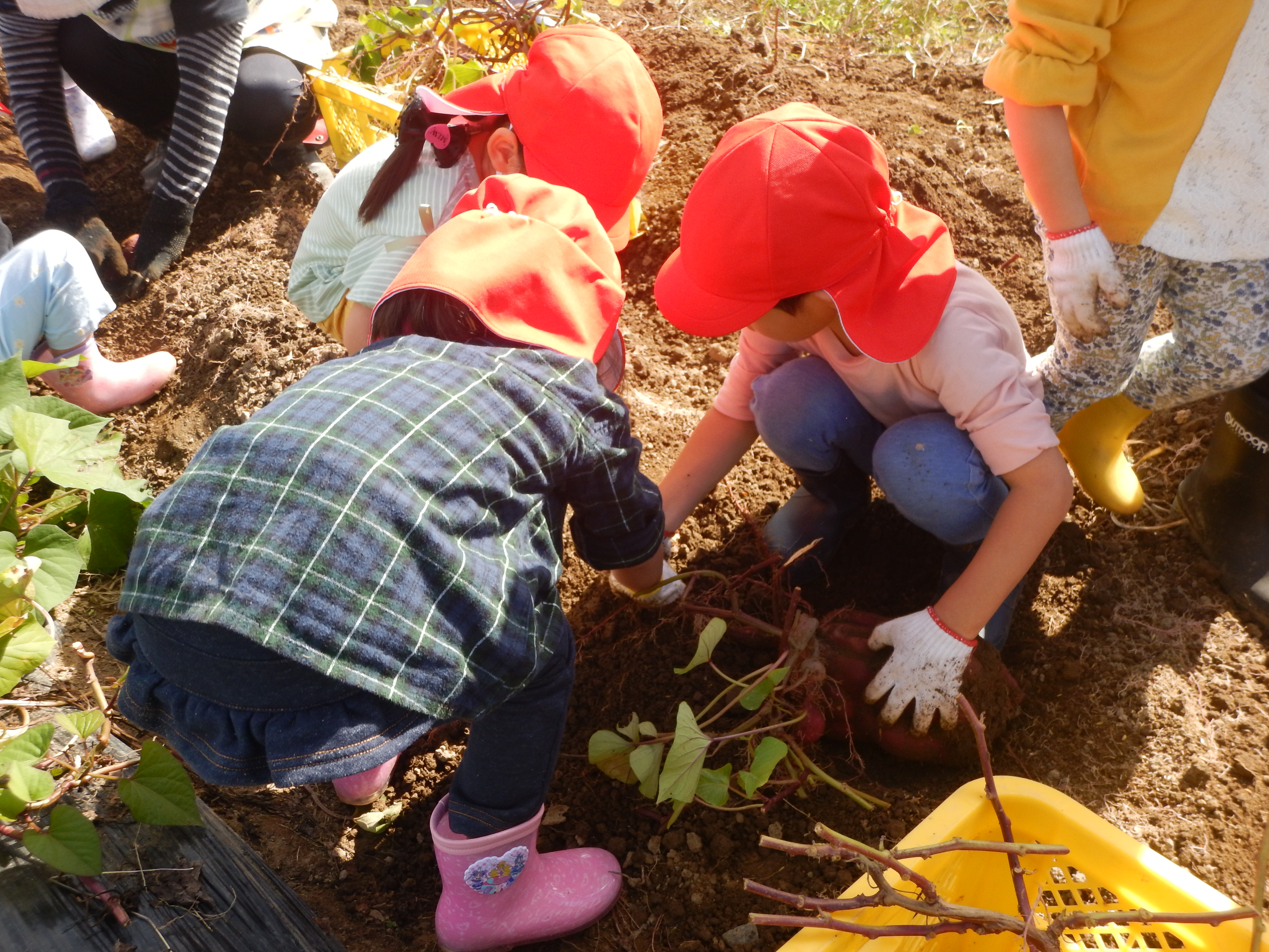 このは第二農園では今年初のさつまいも掘りをしました。今日は、3歳児クラスさんに体験をしてもらいました。