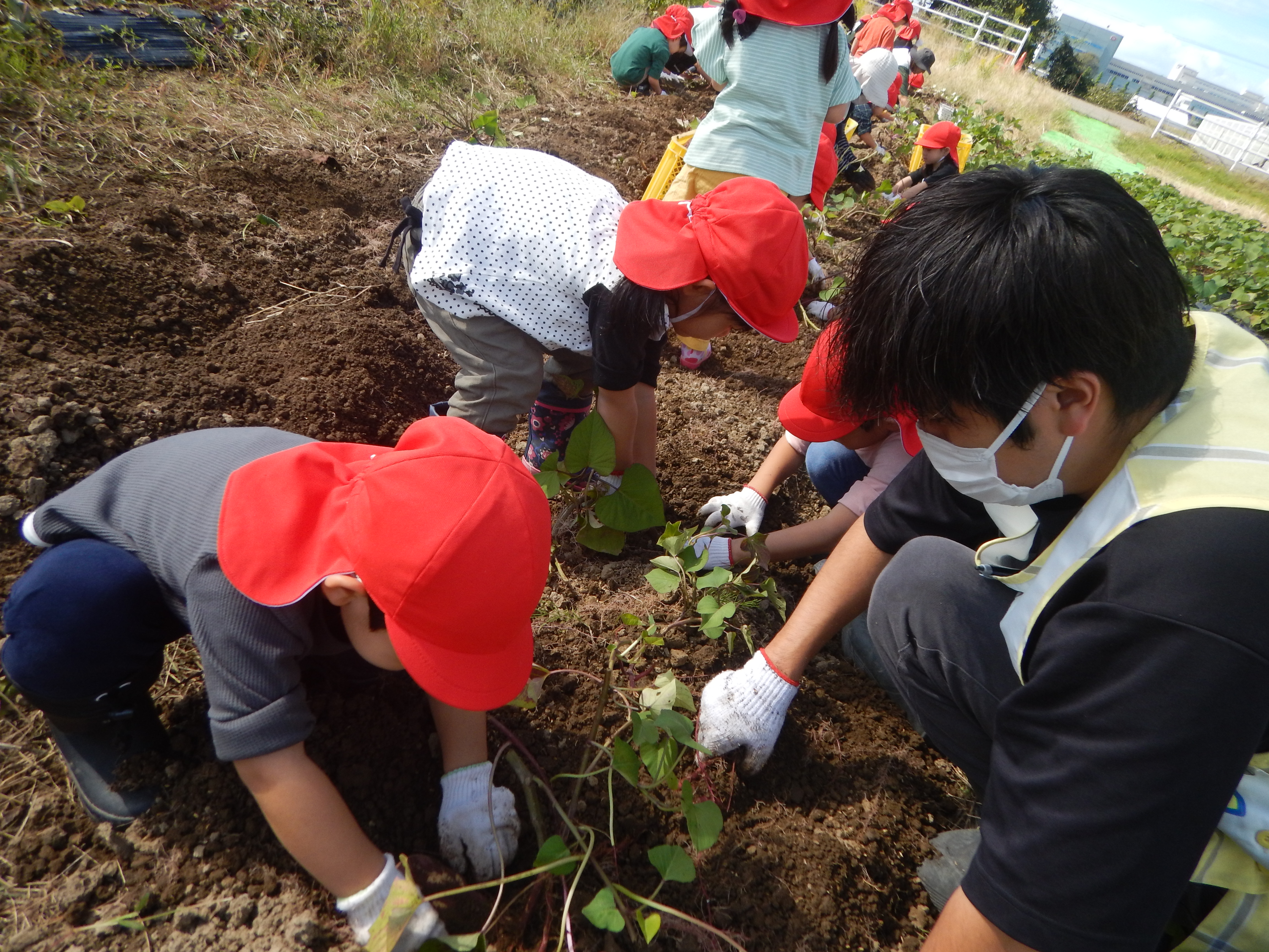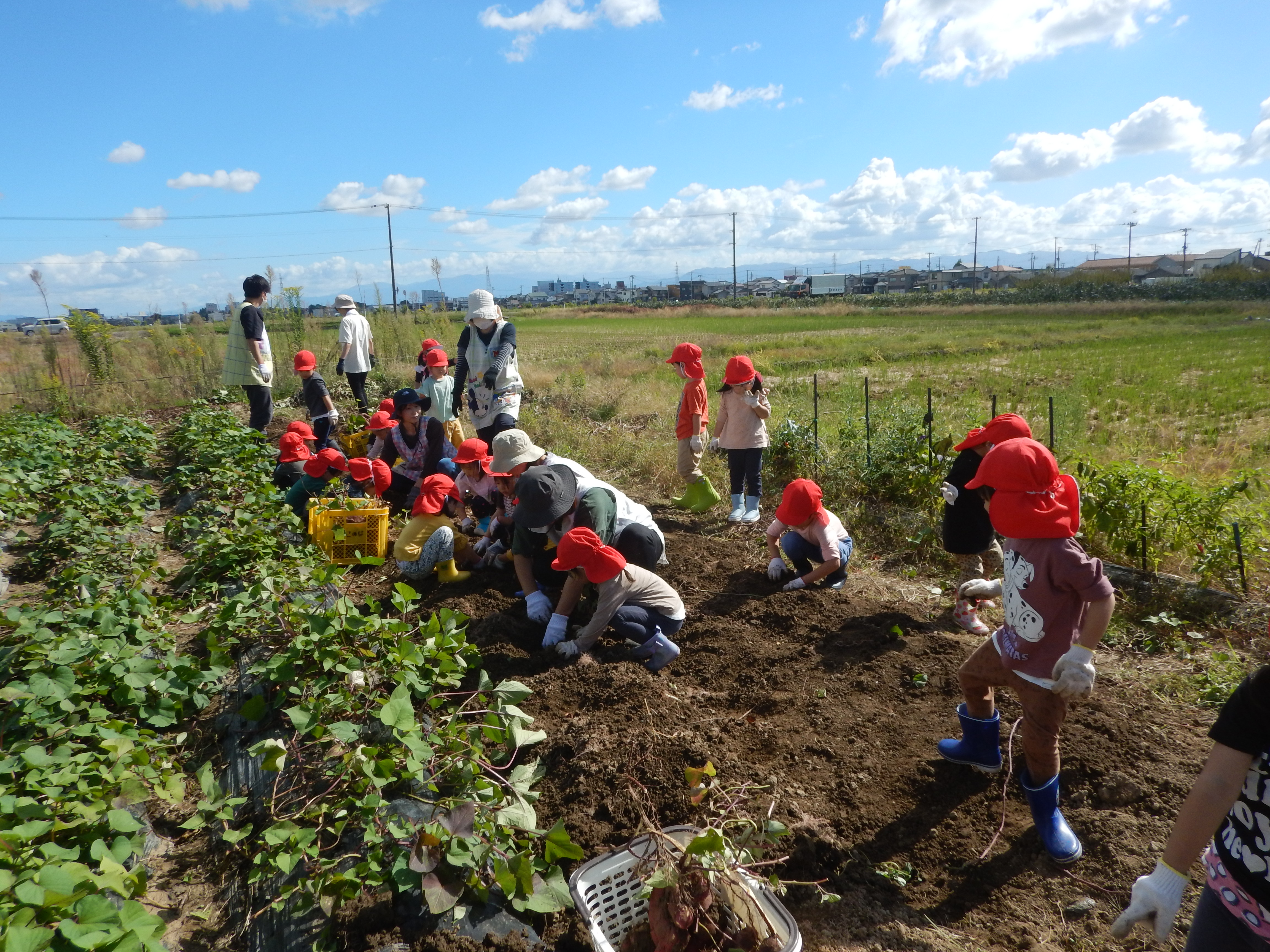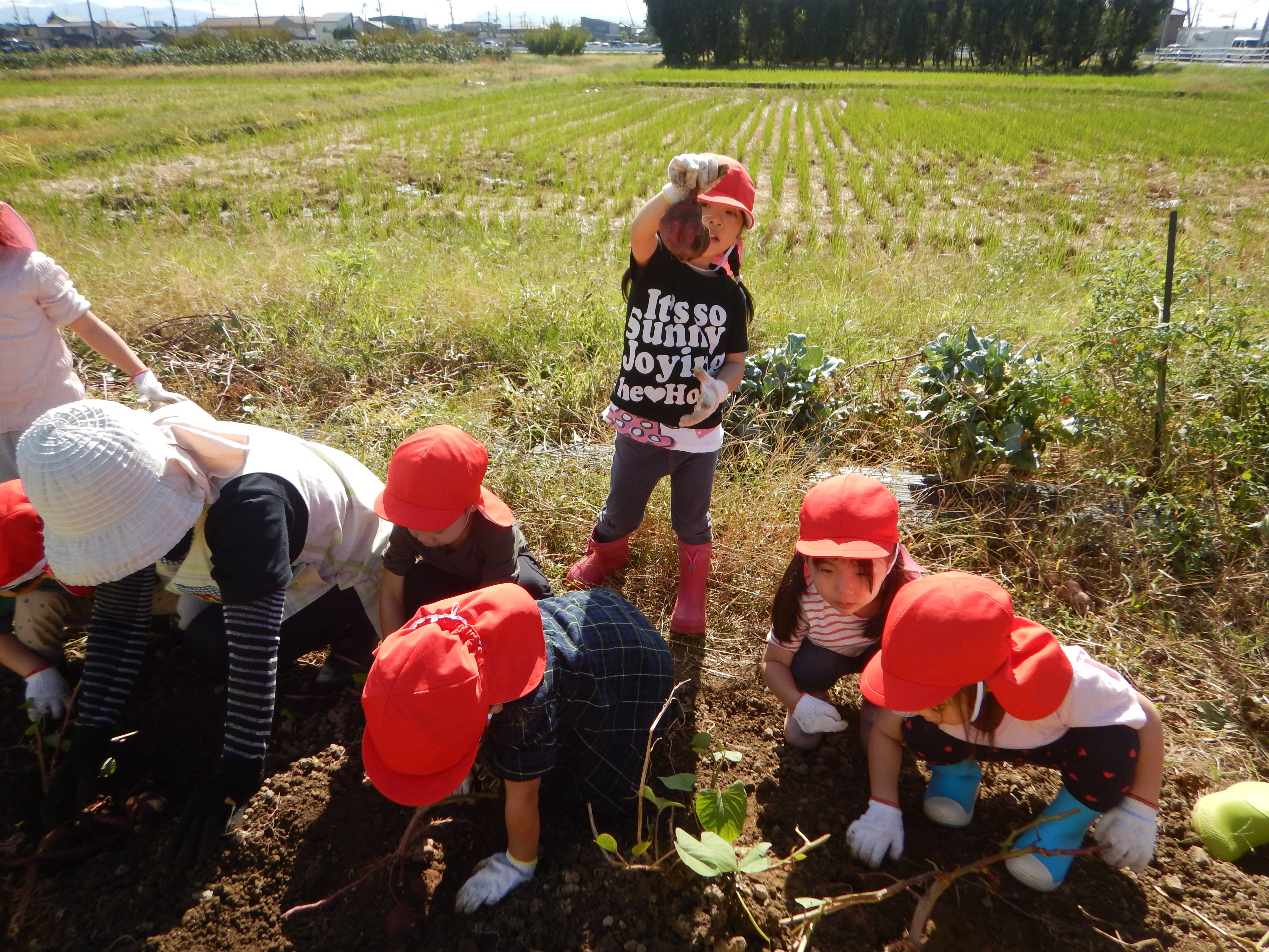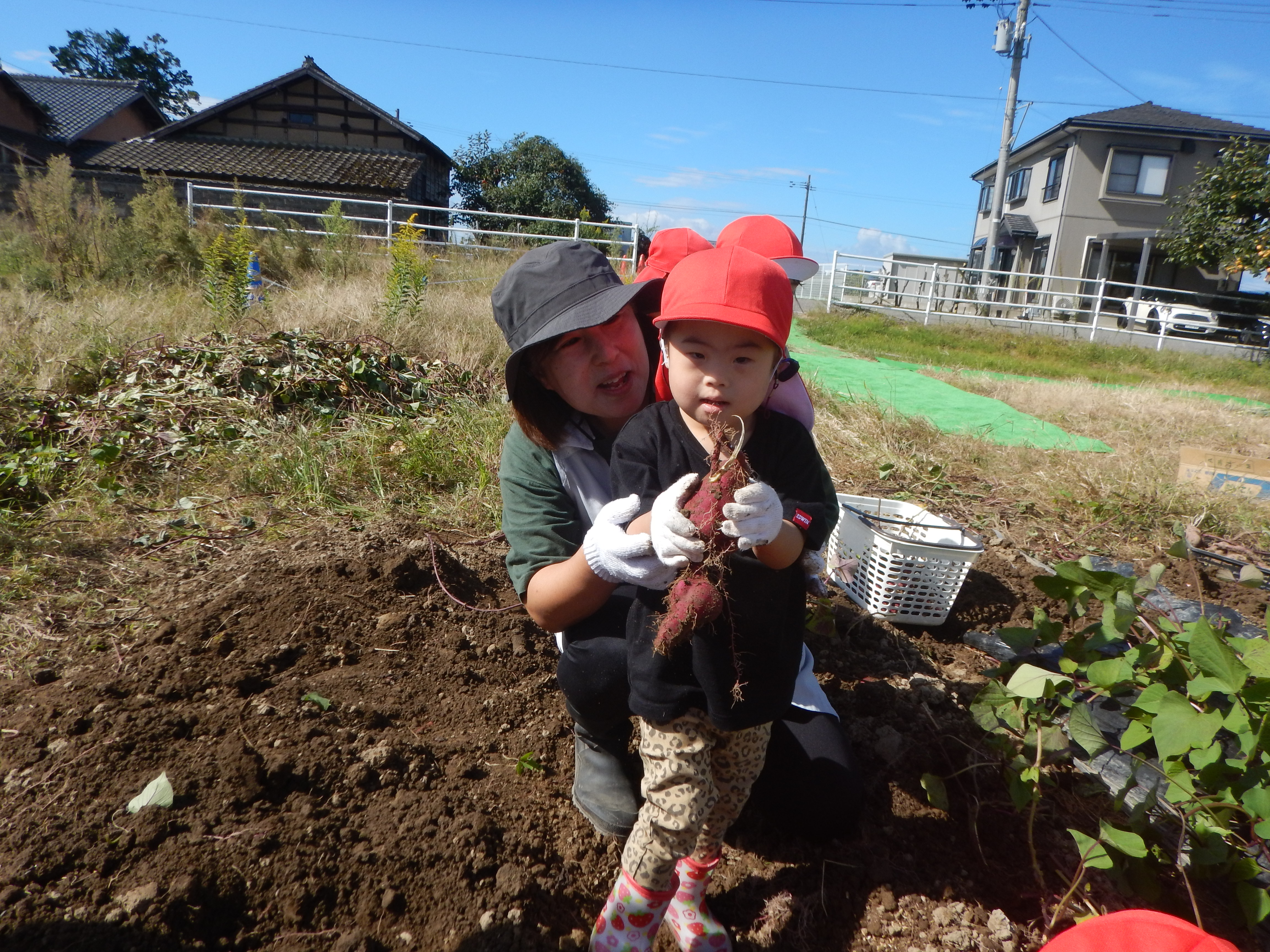 このは第二農園では今年初のさつまいも掘りをしました。今日は、3歳児クラスさんに体験をしてもらいました。