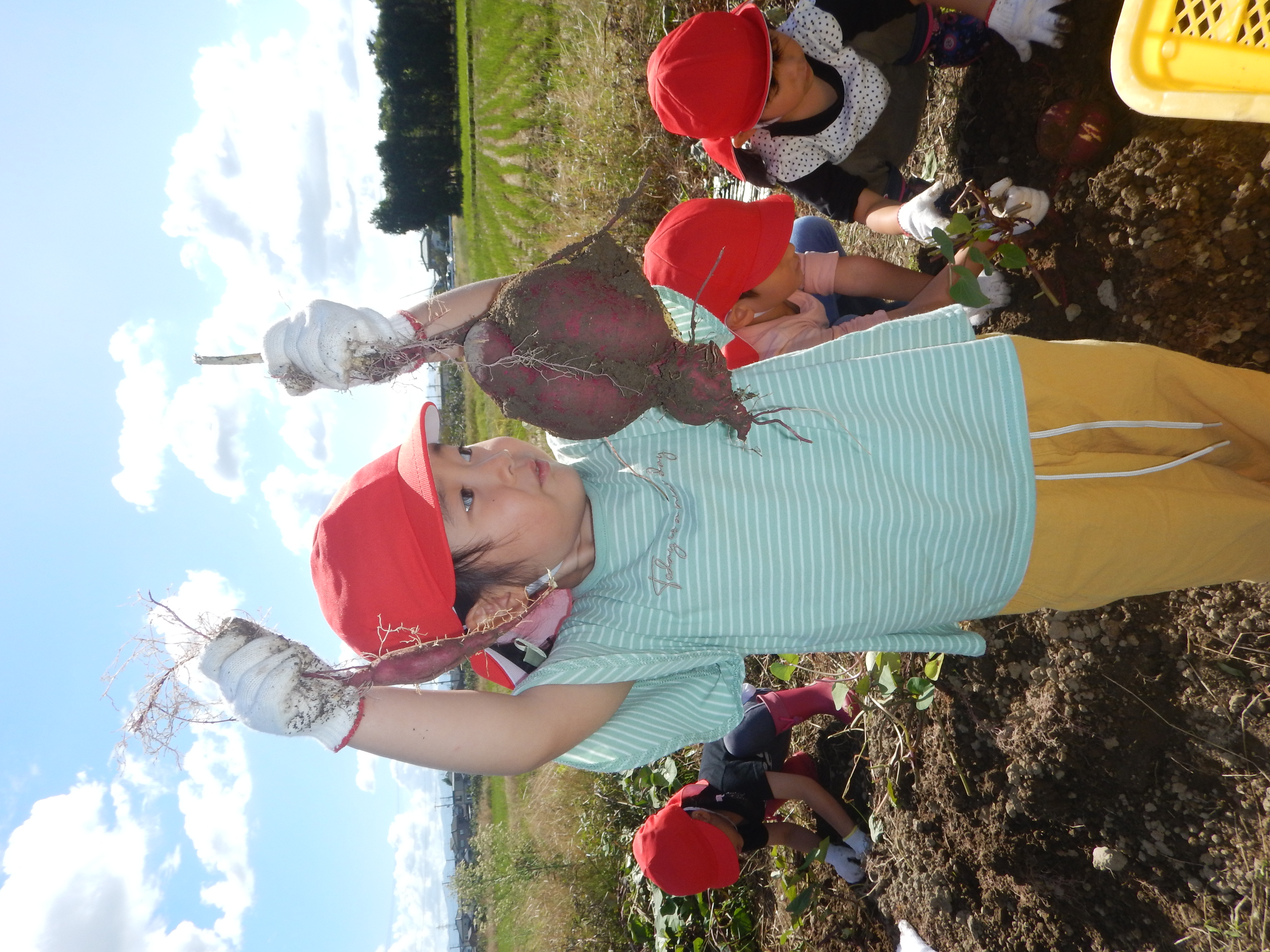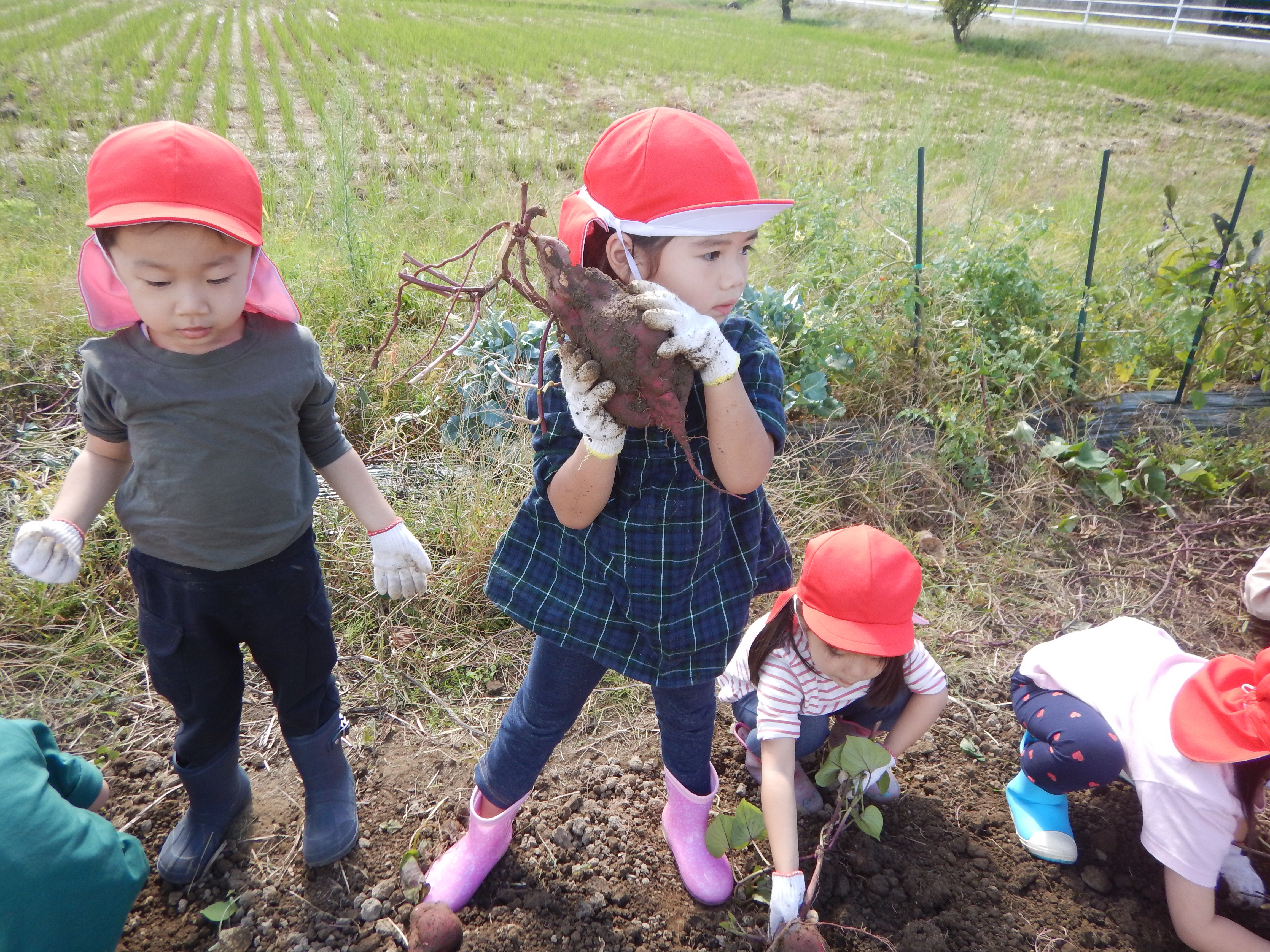 今年はジャンボサイズが沢山出てきました!子どもたちの顔よりも大きなサイズがゴロゴロ!かわいい手で持ち上げてみせてくれました!