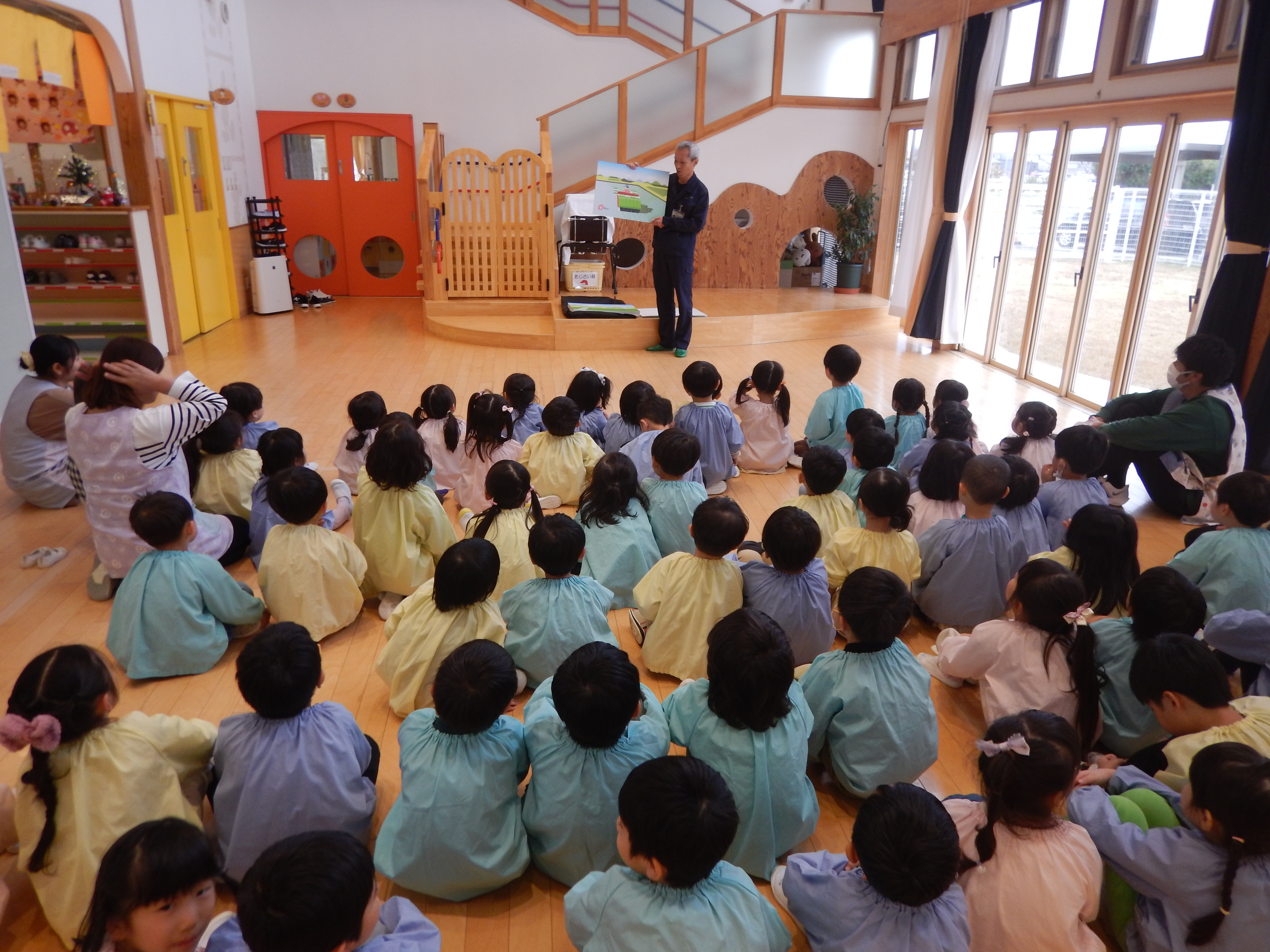JA新潟中央さんに来ていただき、3~5歳児さんにお米のできる過程から販売までをお話ししてもらいました。お米の種類はものすごく多いんだそうです。