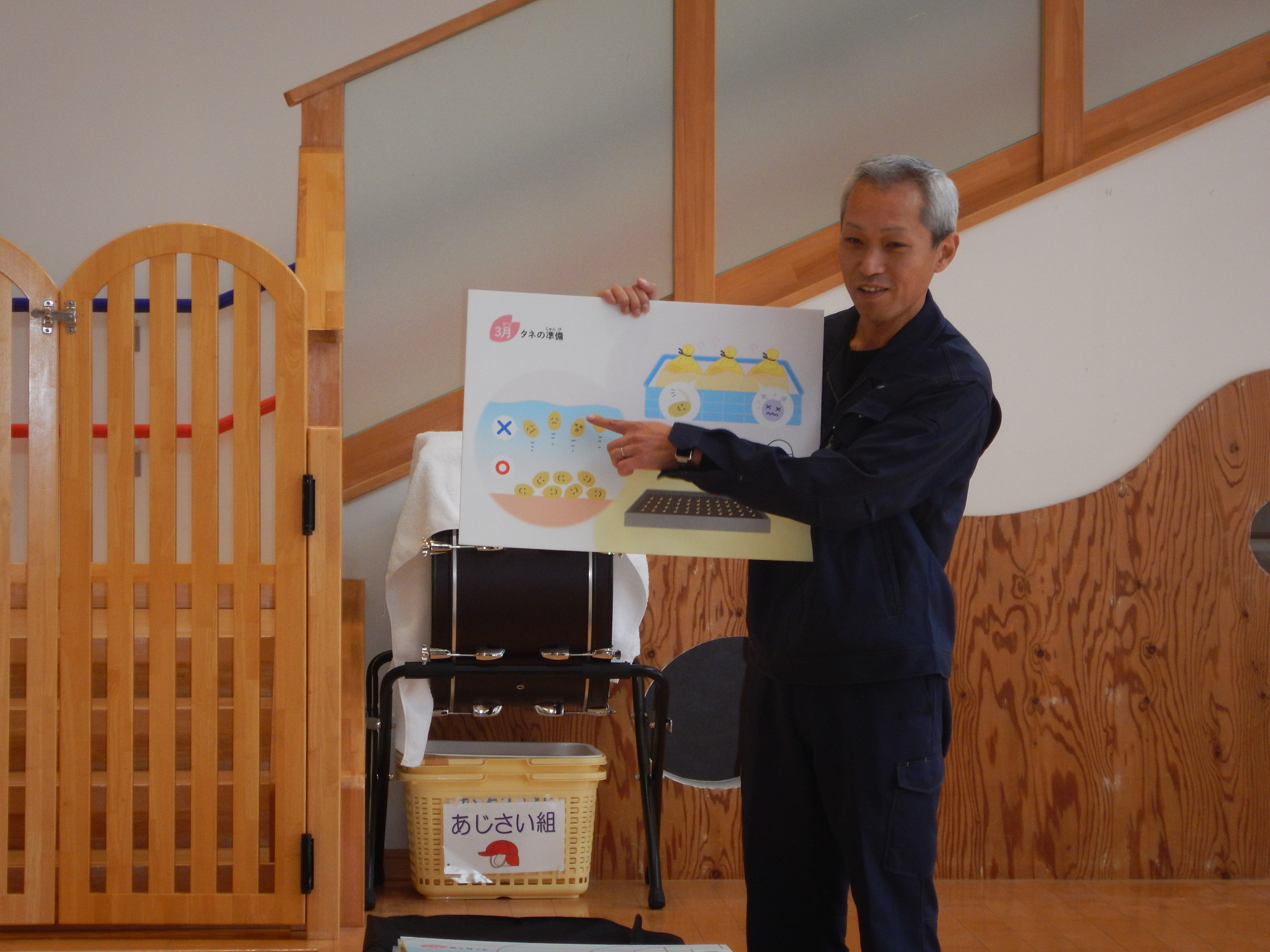 JA新潟中央さんに来ていただき、3~5歳児さんにお米のできる過程から販売までをお話ししてもらいました。お米の種類はものすごく多いんだそうです。