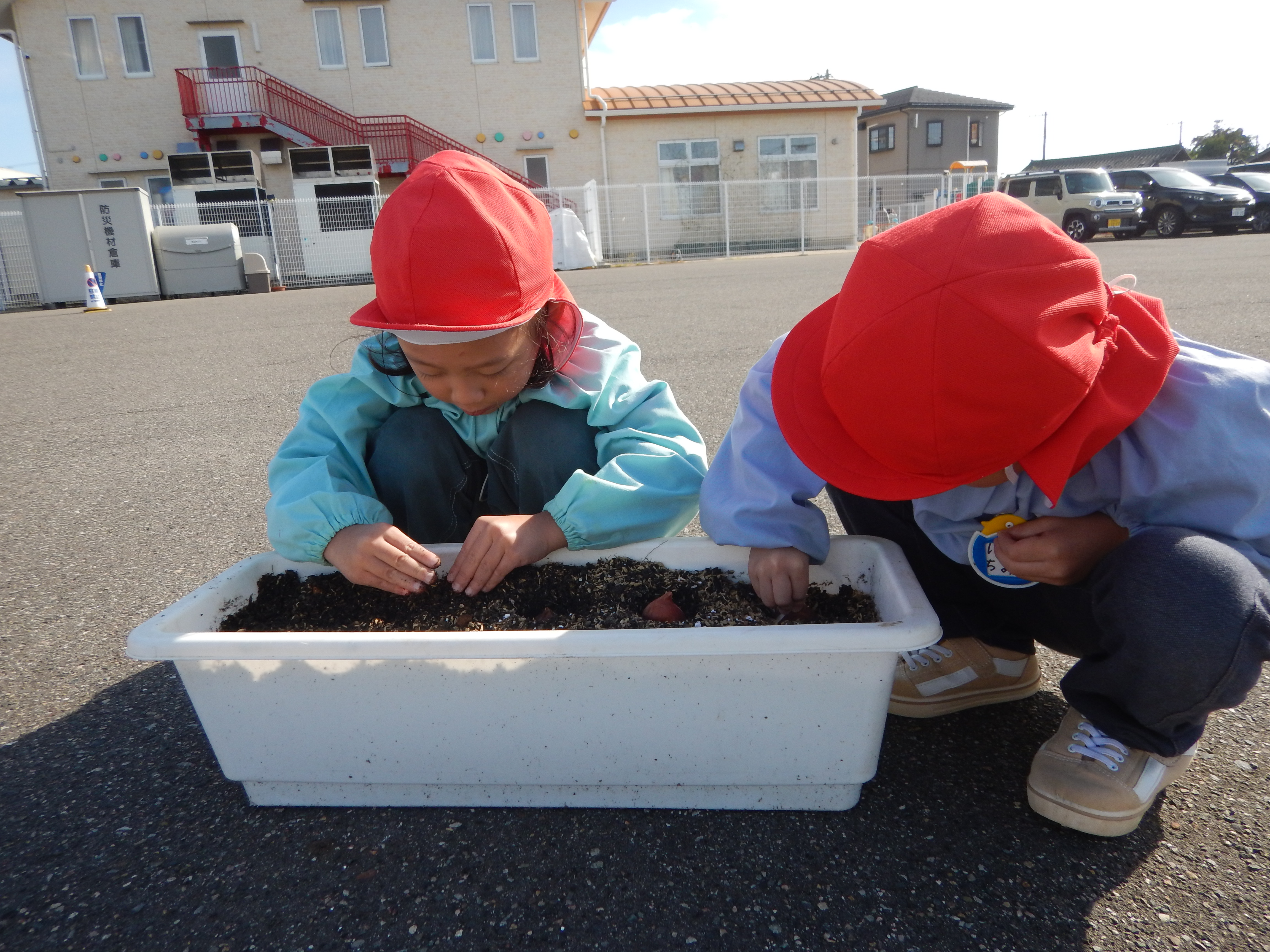 毎年、4歳児クラスのお友だちに🌷チューリップの球根植えをしています。