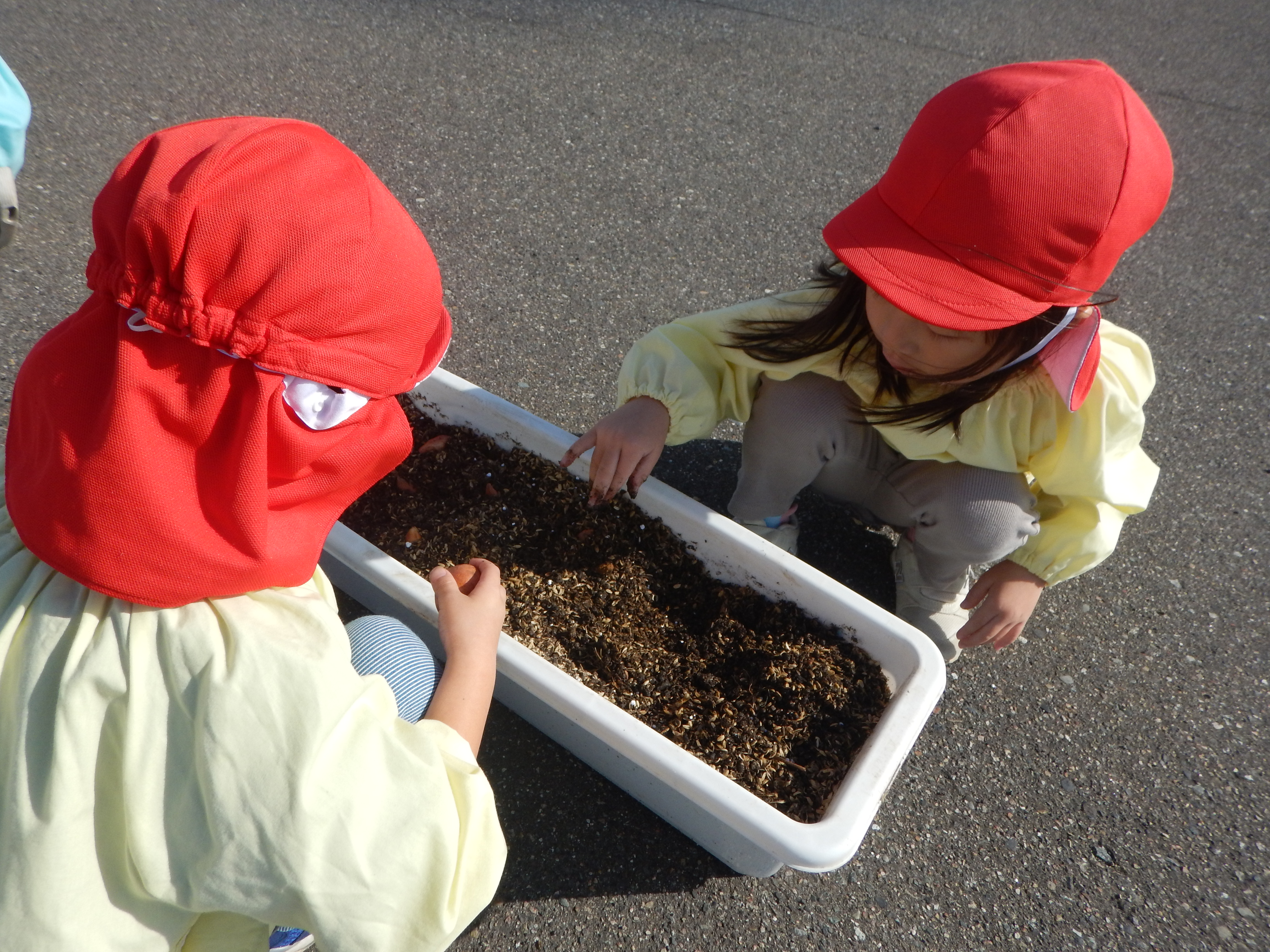 今年は赤と黄色の球根を植えました。一人5個ずつ好きな色の球根を取りプランターへ入れて優しく土をかぶせました。