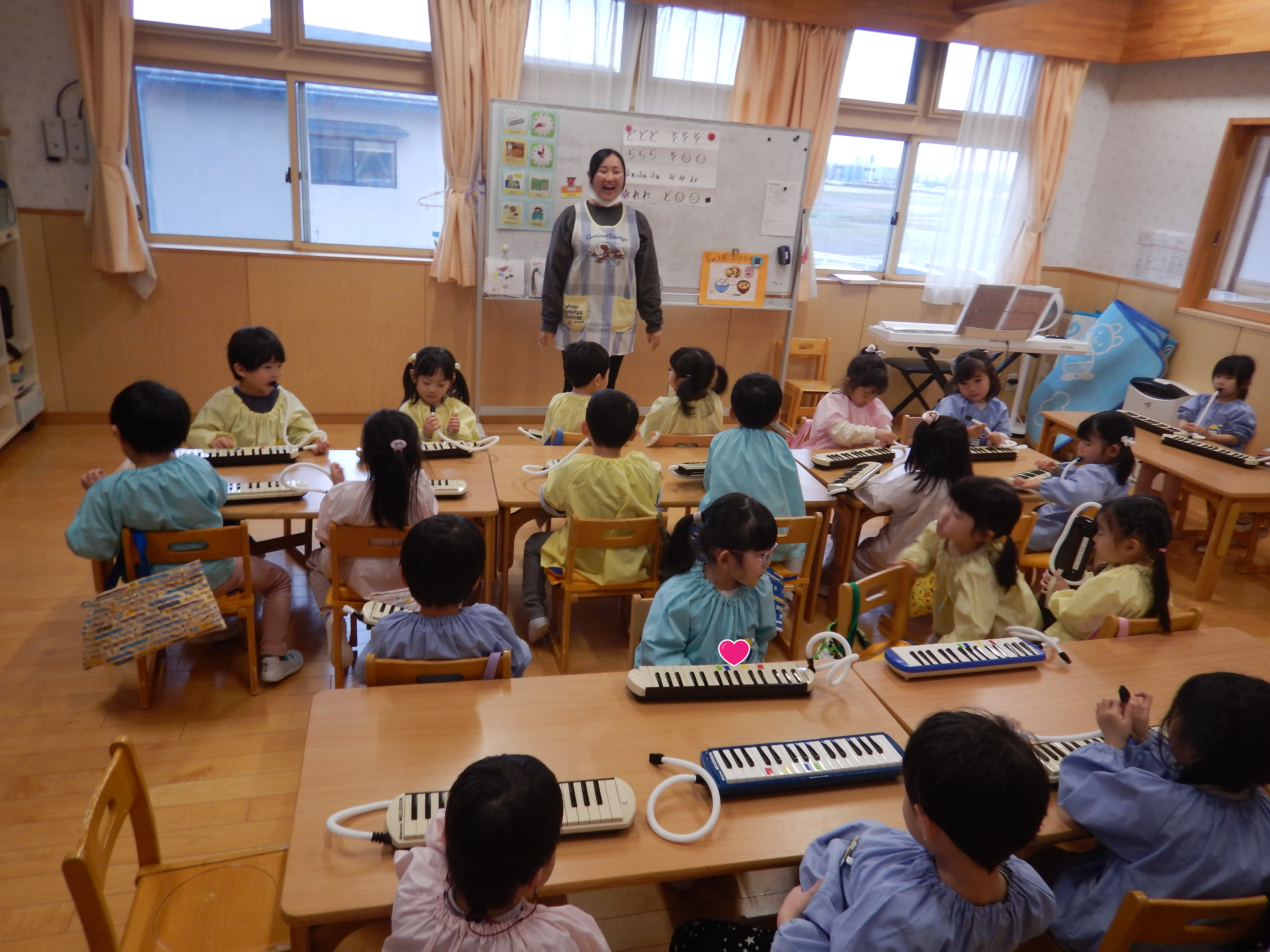 4歳児さんはメロディオン練習をしていました。4歳児さんは発表会では「きらきら星」を演奏するのですが、昨年度後半から少しずつ練習していました。