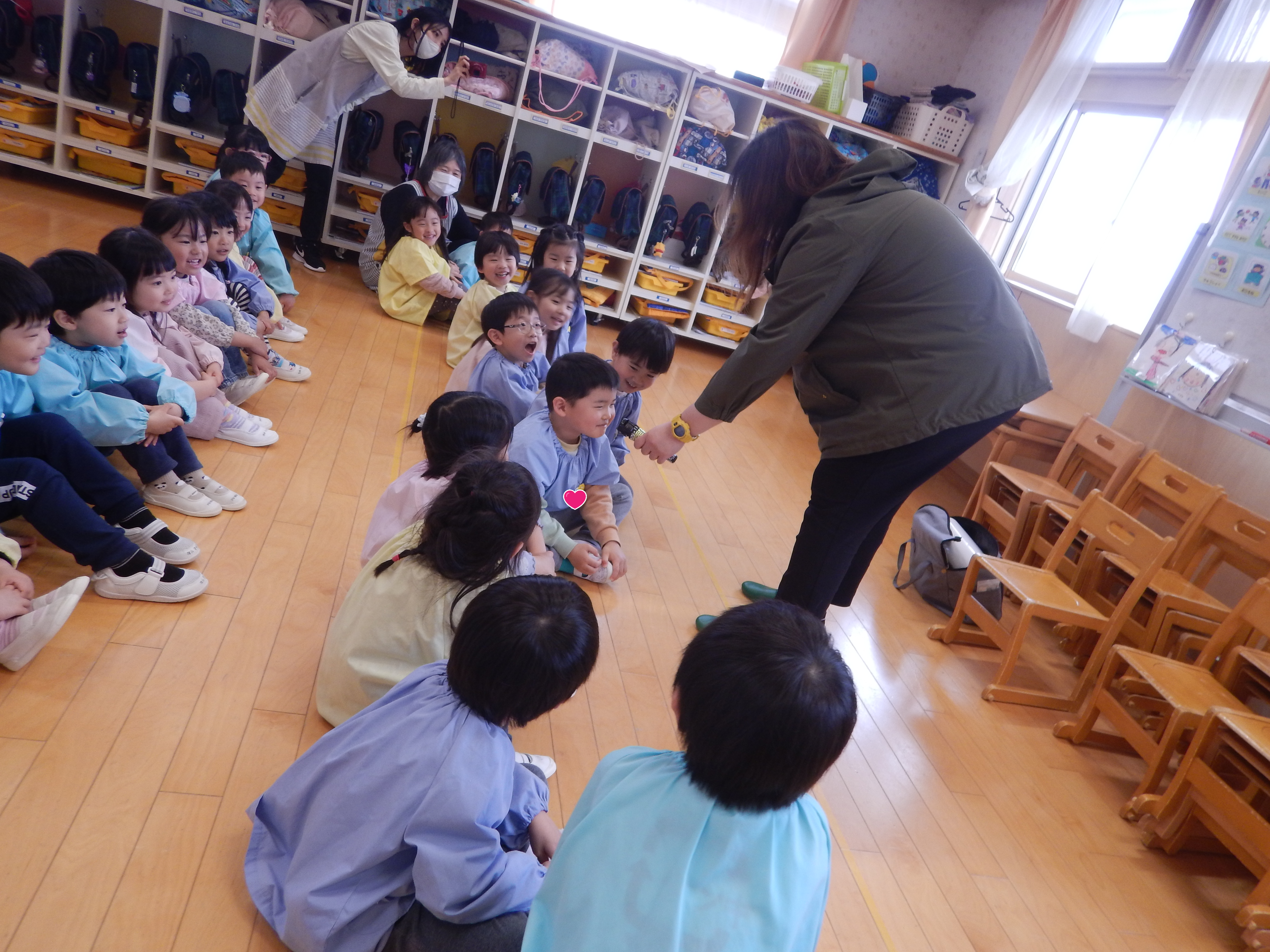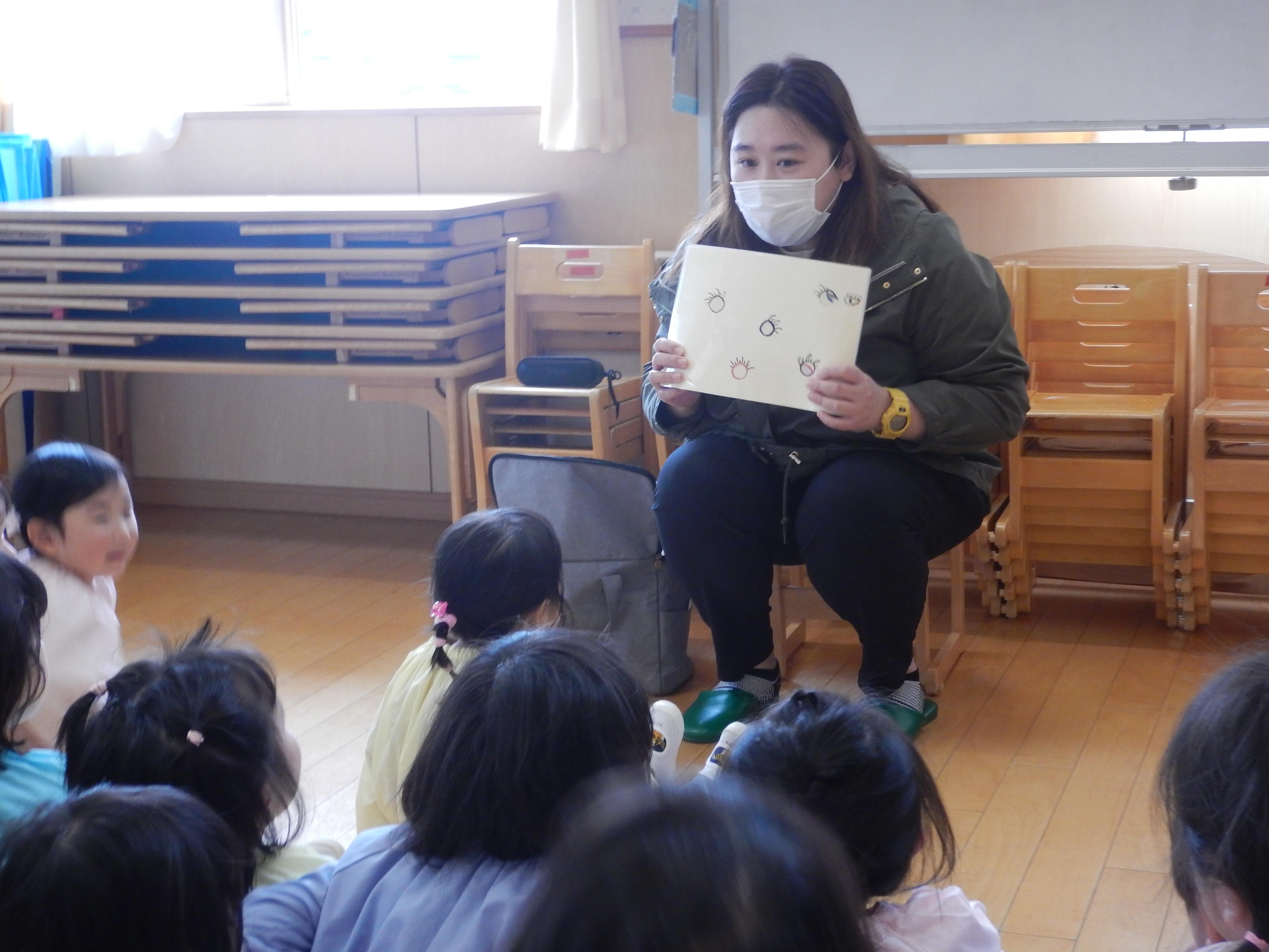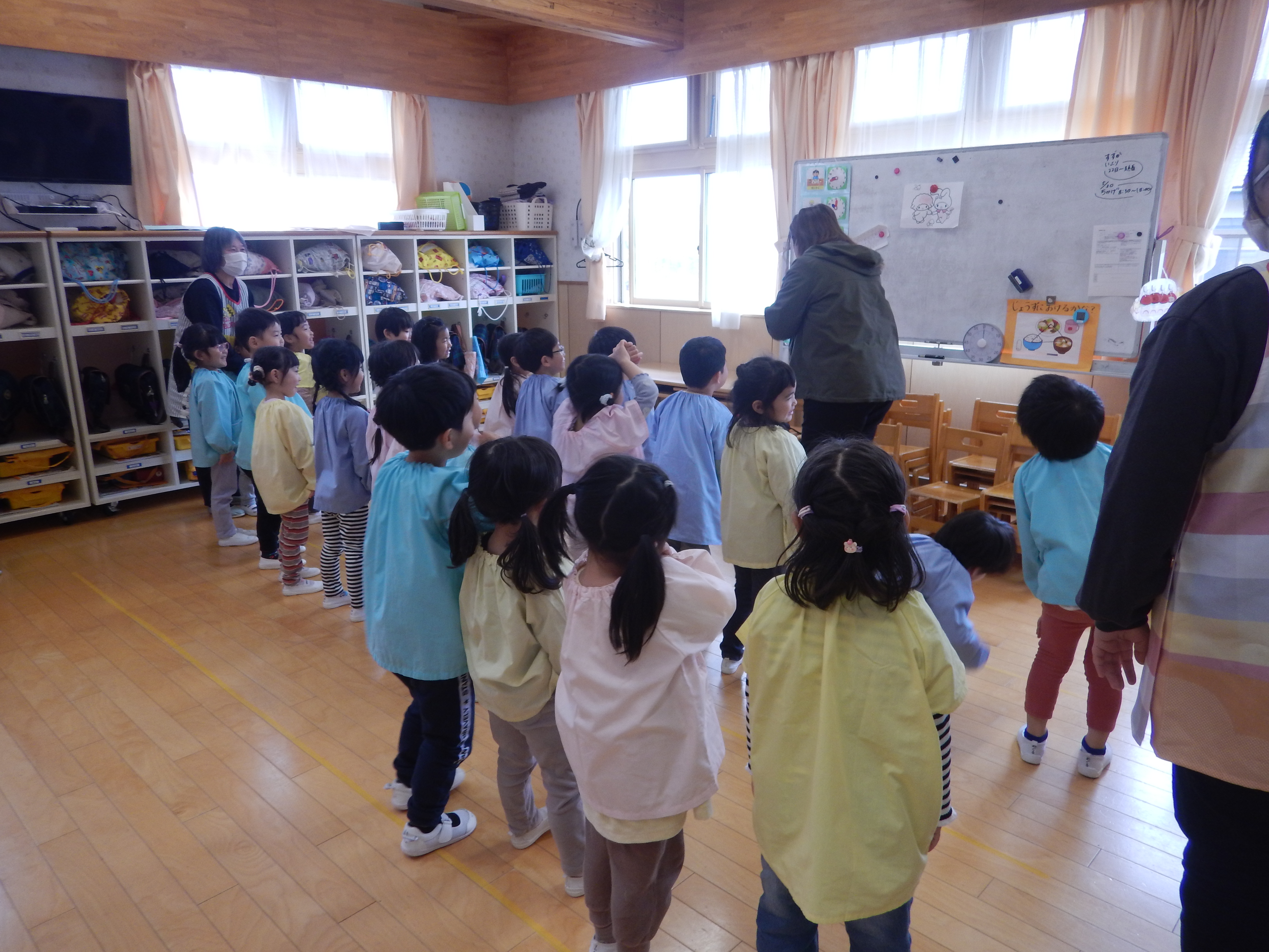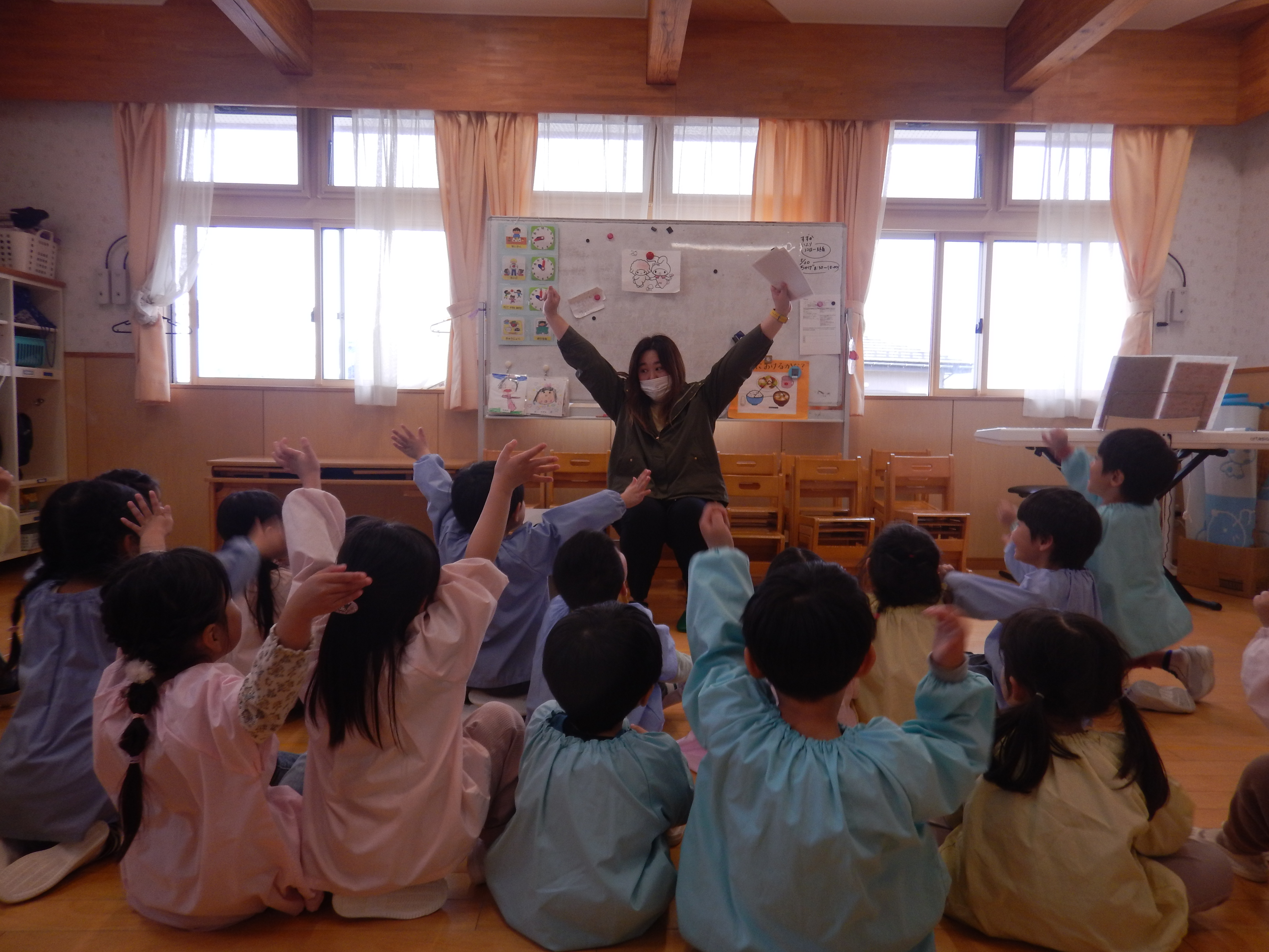 今日は、今年度初めての英語教室がありました。3歳児さんは園で初めての英語。バナナとアップルのカードで左右に移動するゲームをしたりアリゲーター🐊の絵本を読んでもらったり最後はさようならの歌を振りをつけながら歌って先生とバイバイしました。