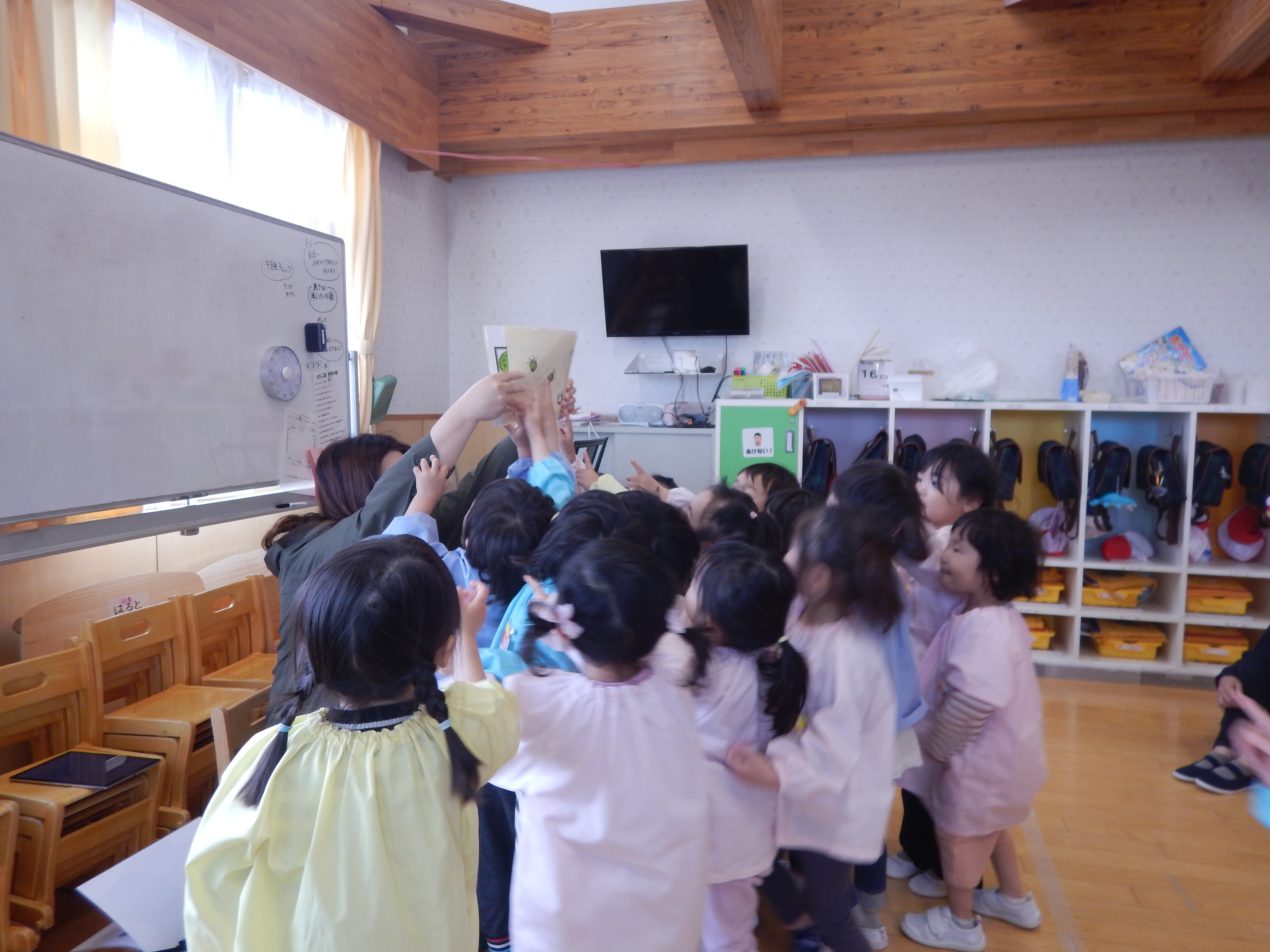 「あったよ!」と嬉しそうに教えてくれる子、自分のお洋服から一生懸命同じ色を探す子などにぎやかに参加していました。