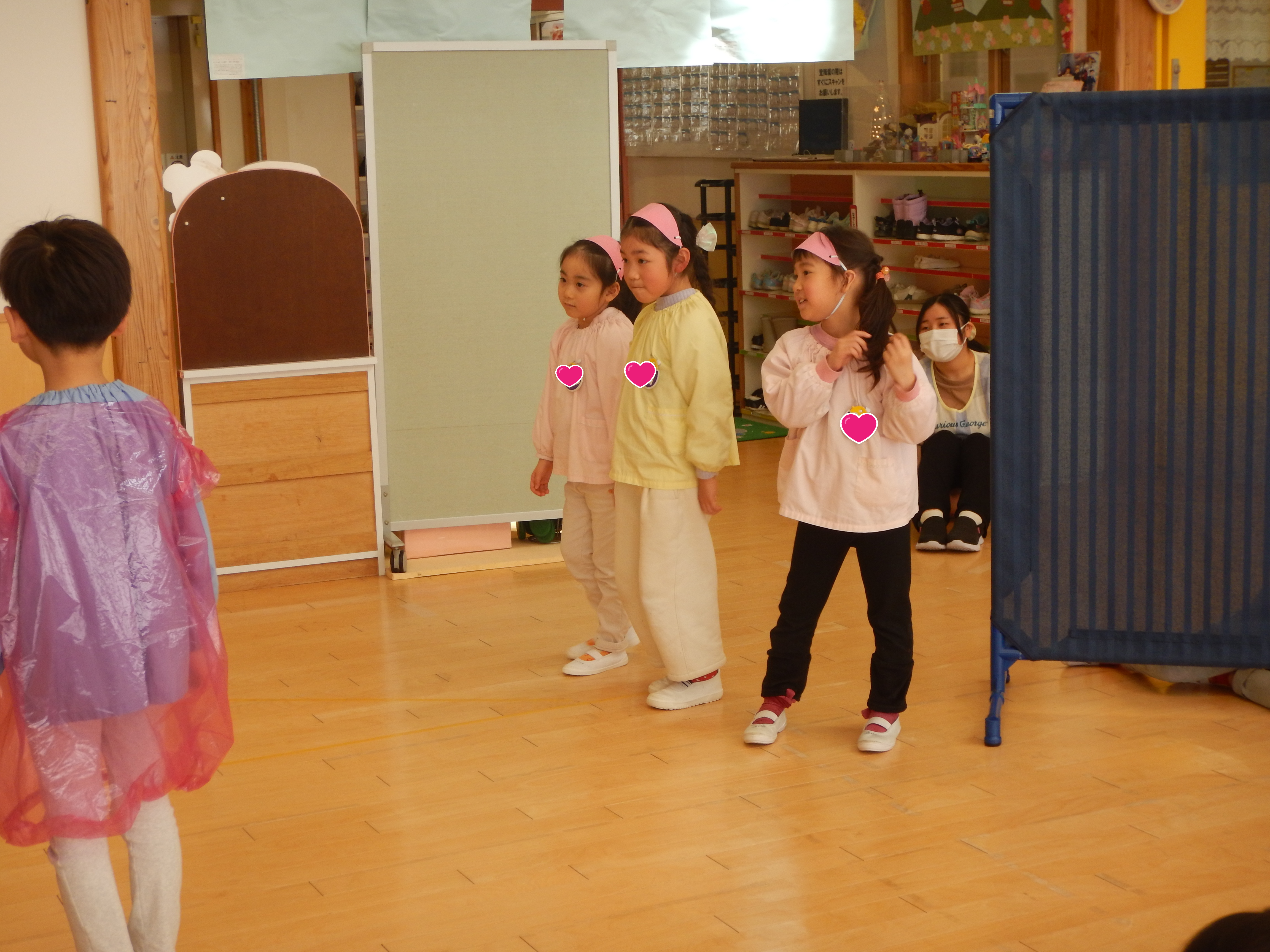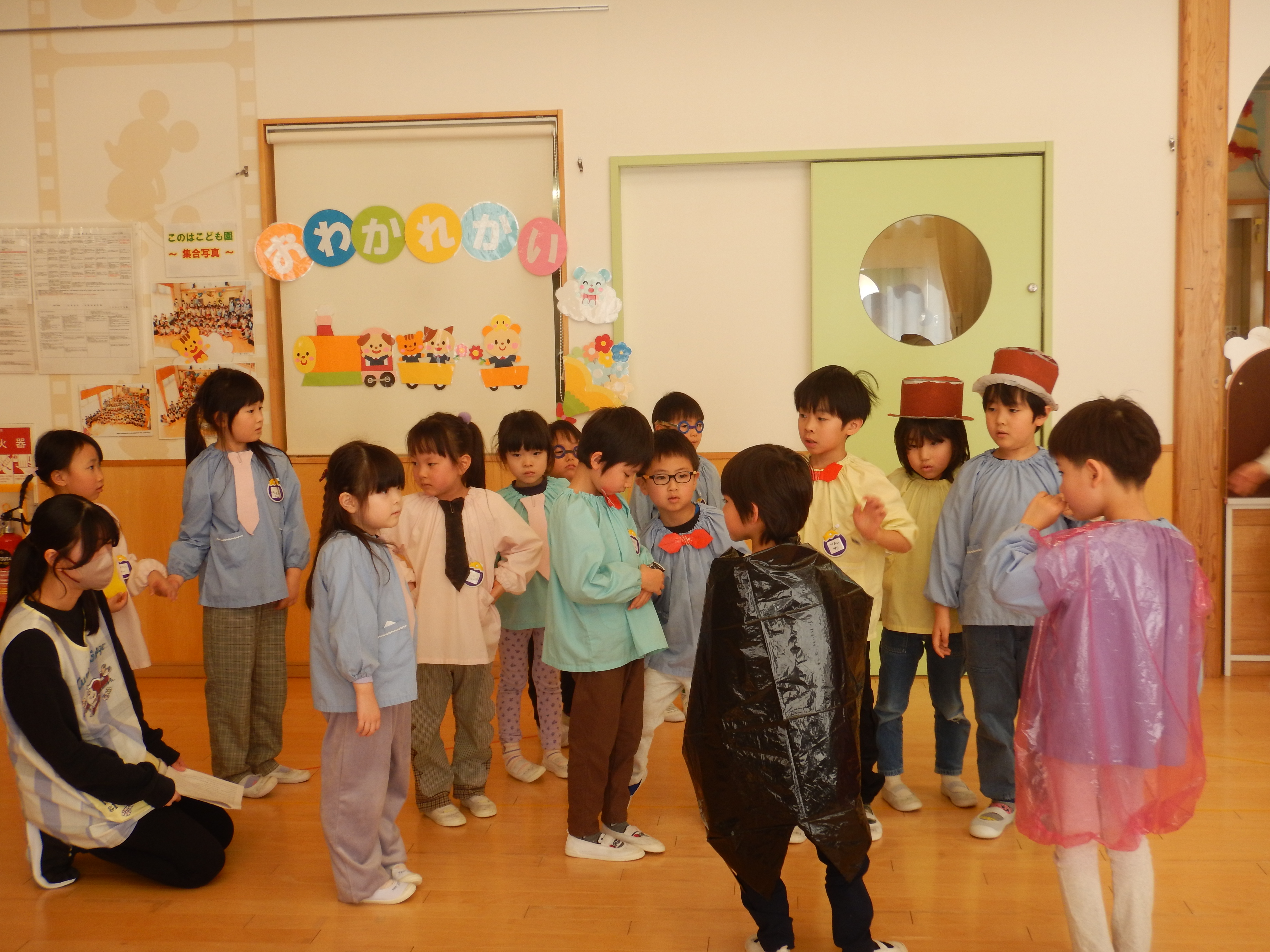 3月6日(金)、おわかれ会がありました。卒園する年長組さんに感謝を込めて、3.4歳児さんが出し物をしたり素敵な手作りプレゼントを渡しました。