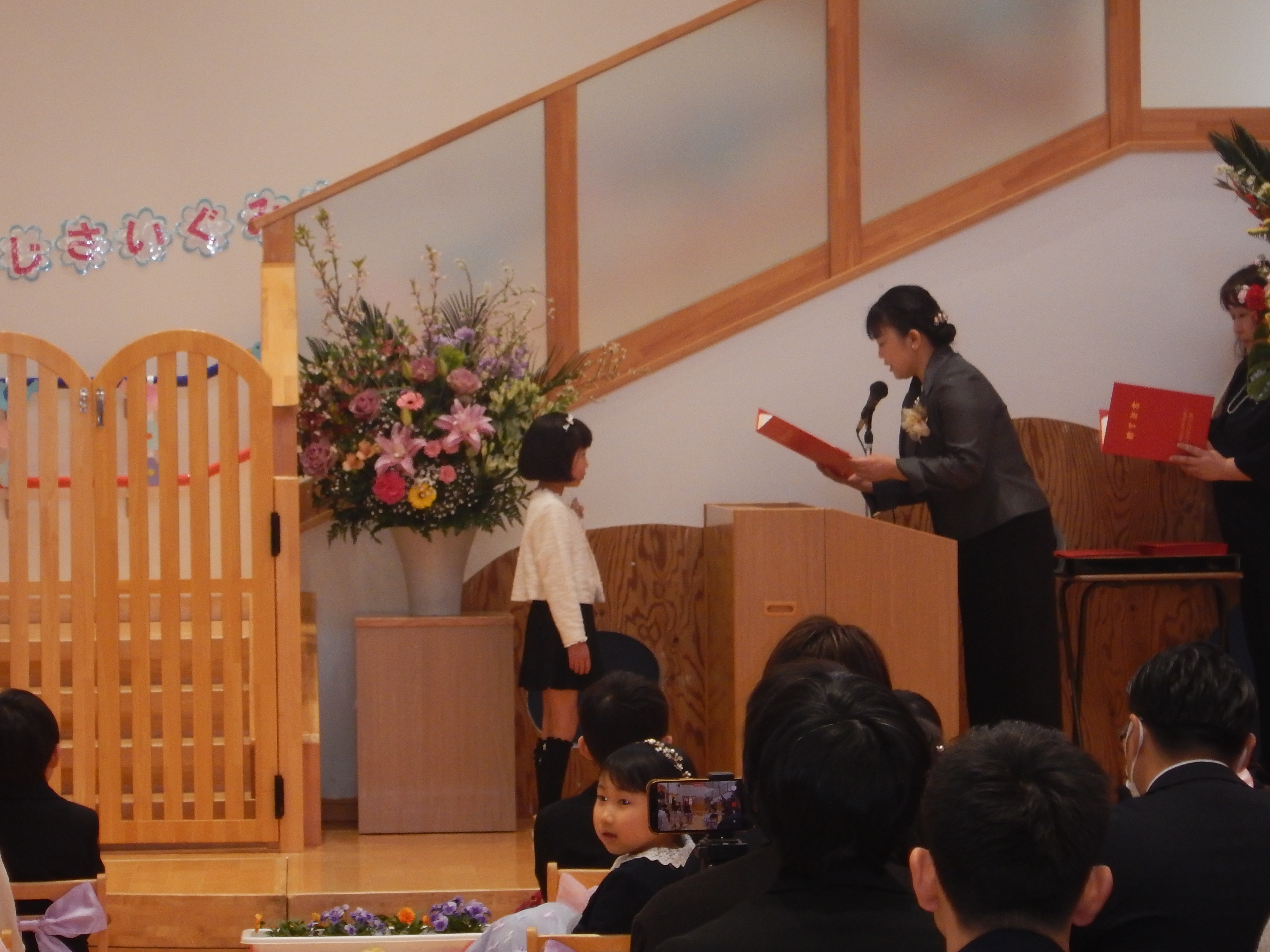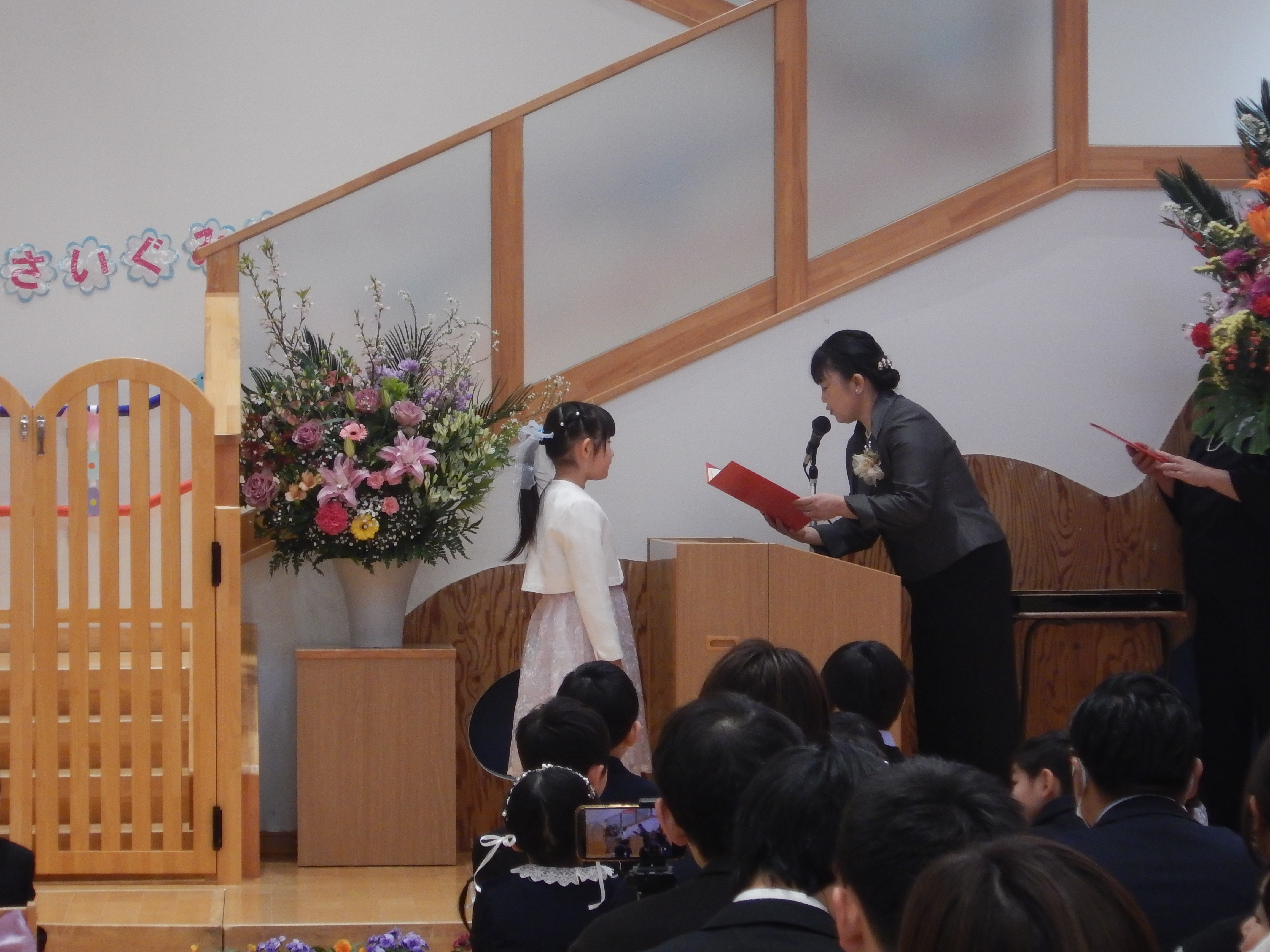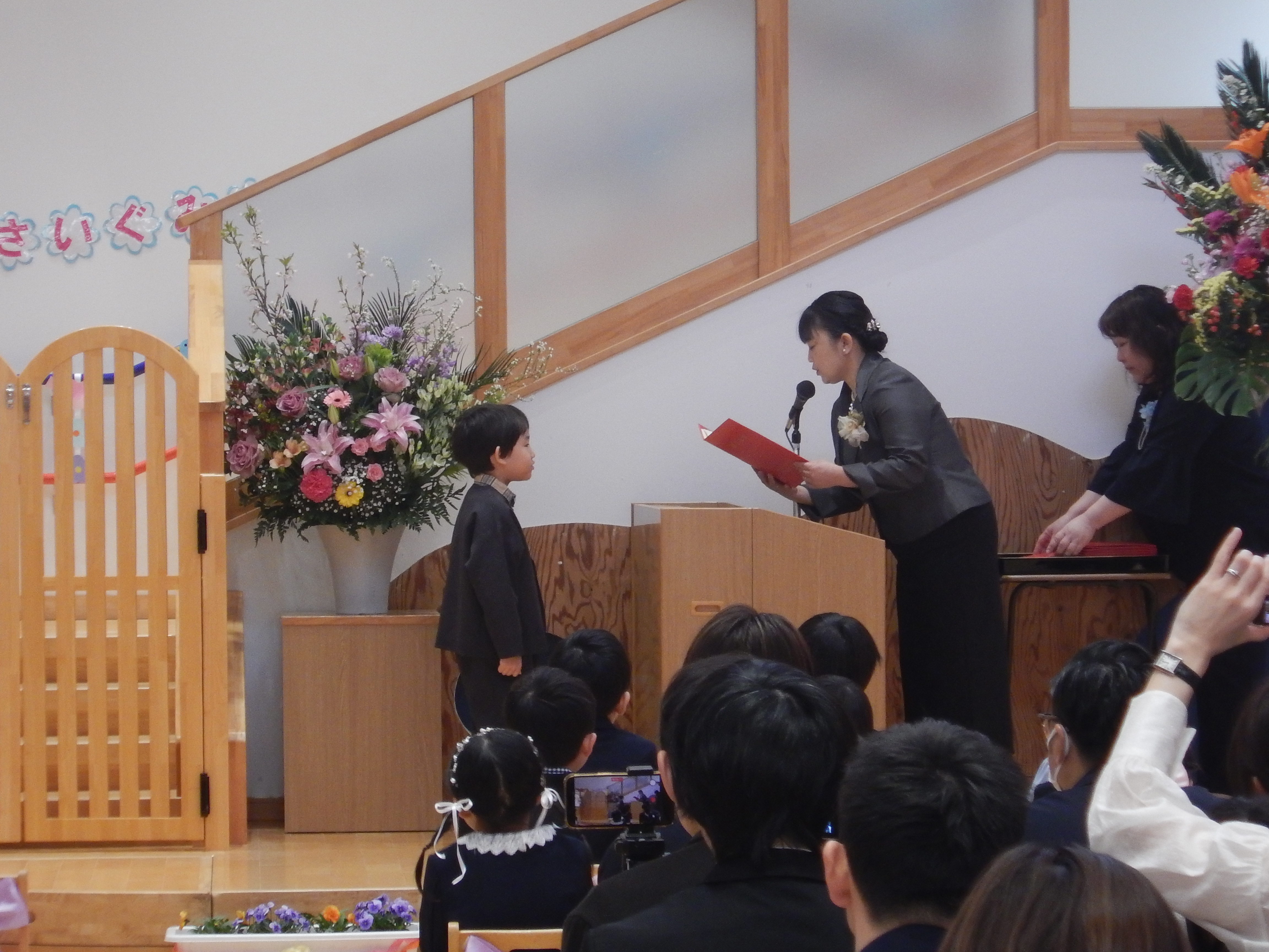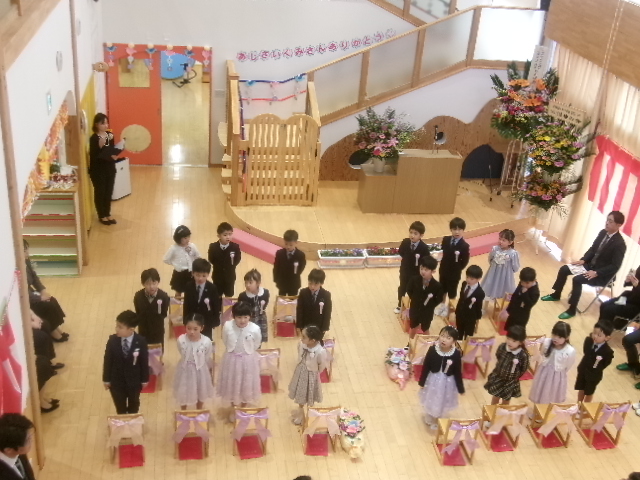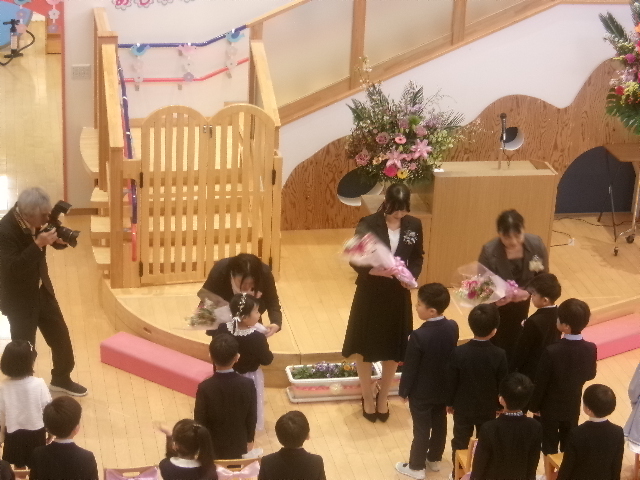 3月21日(土)、卒園式が行われました。卒園児21名が一人ずつ元気よく返事をして、園長先生から証書をもらいました。