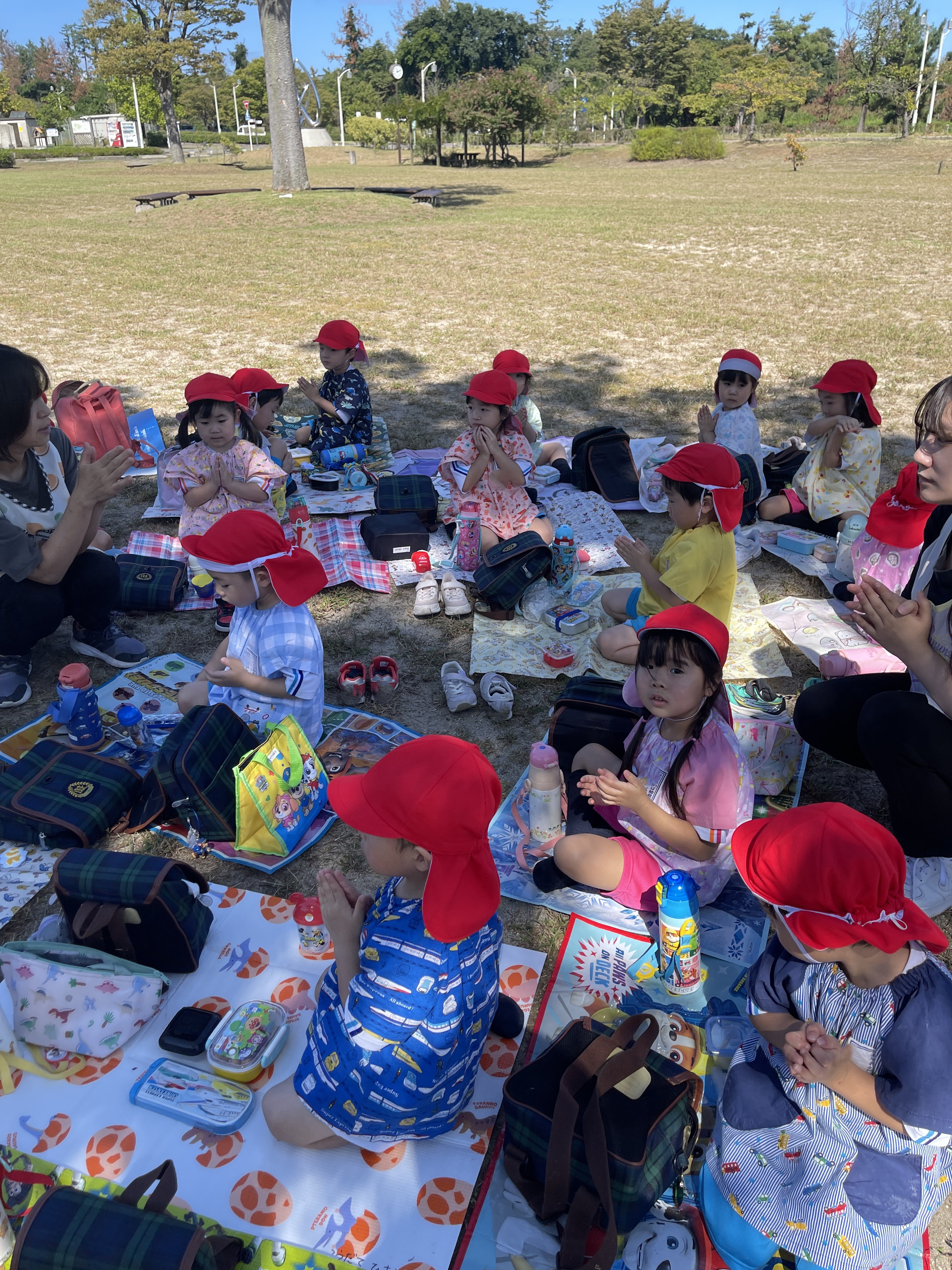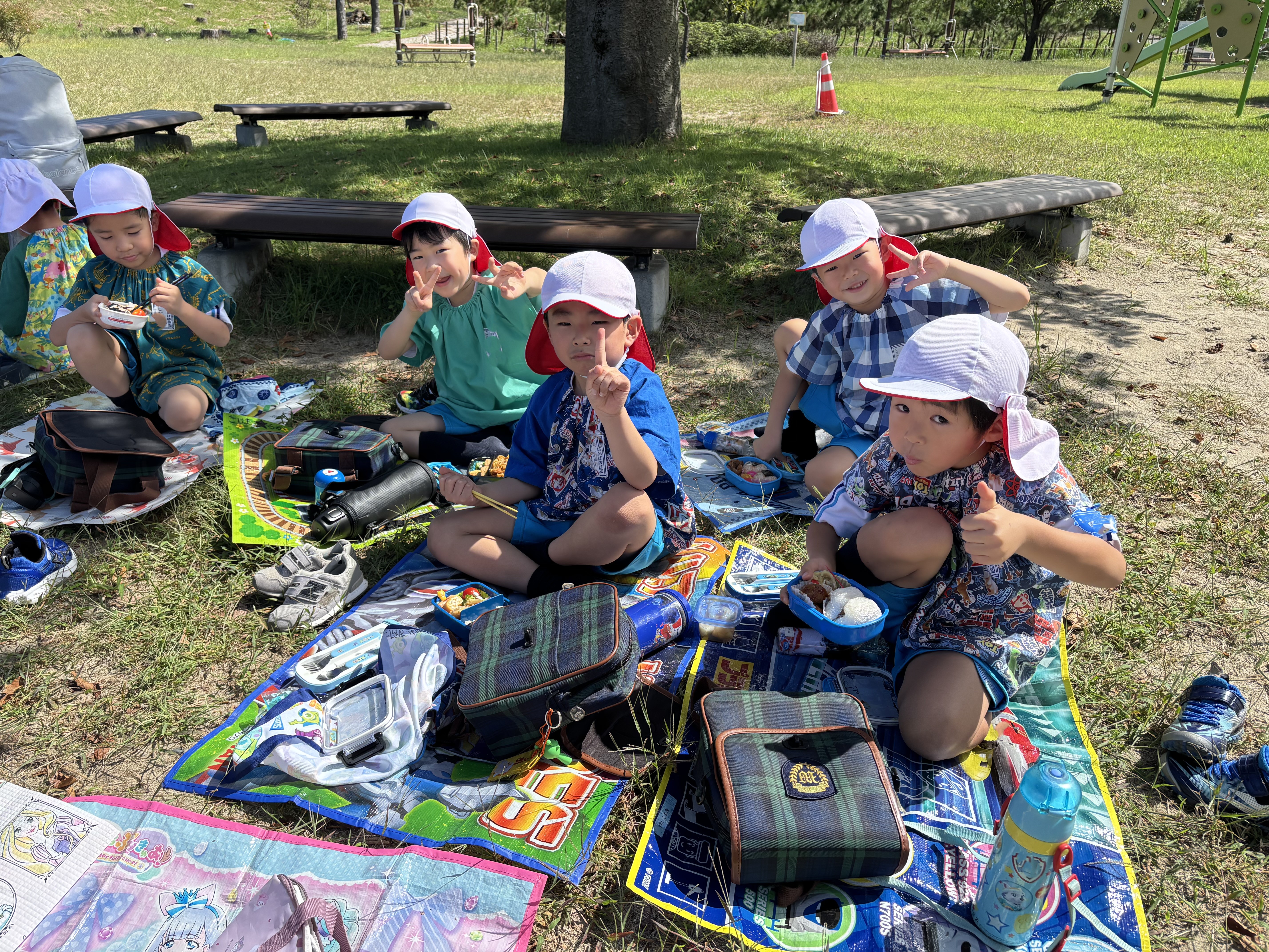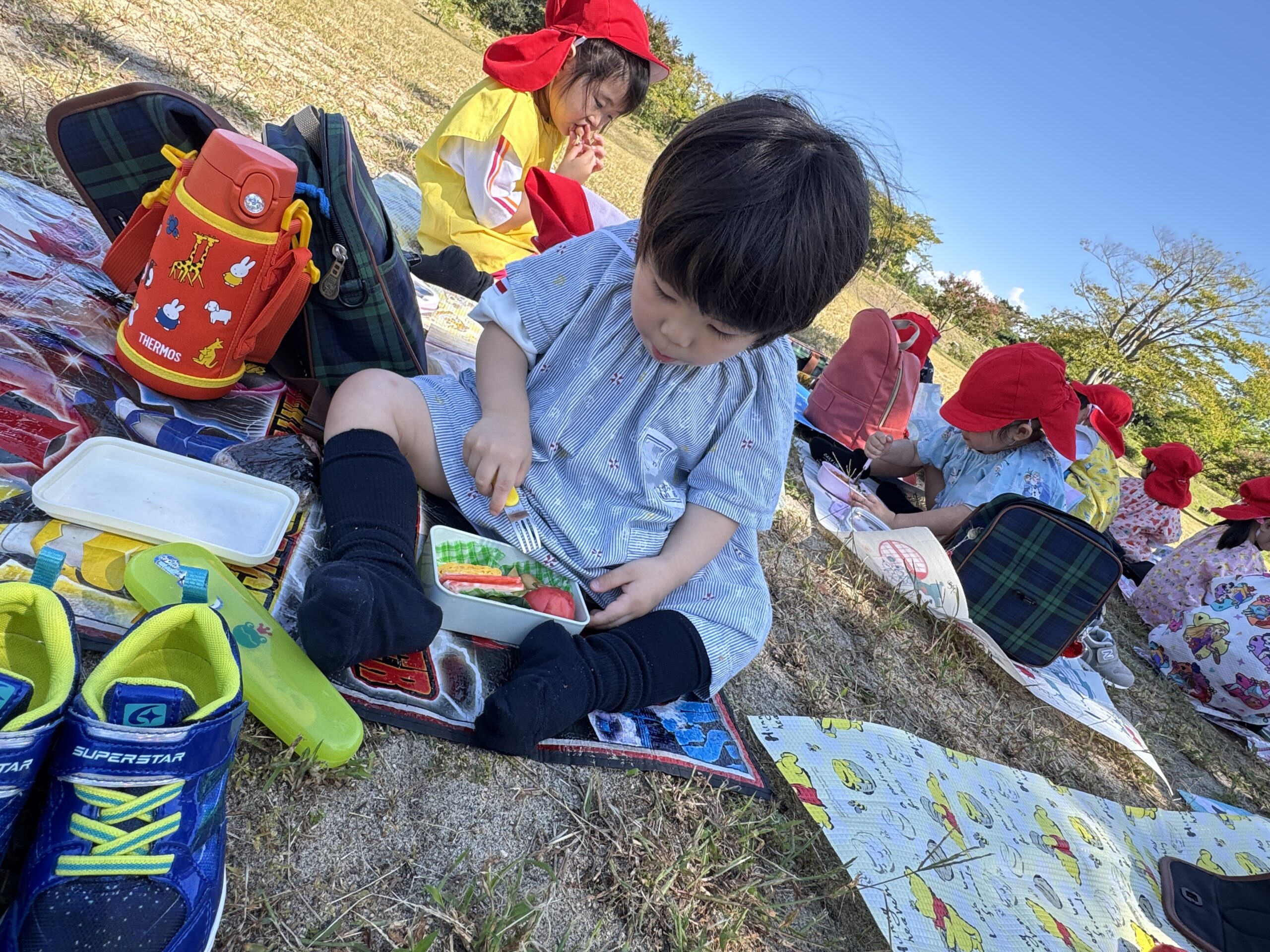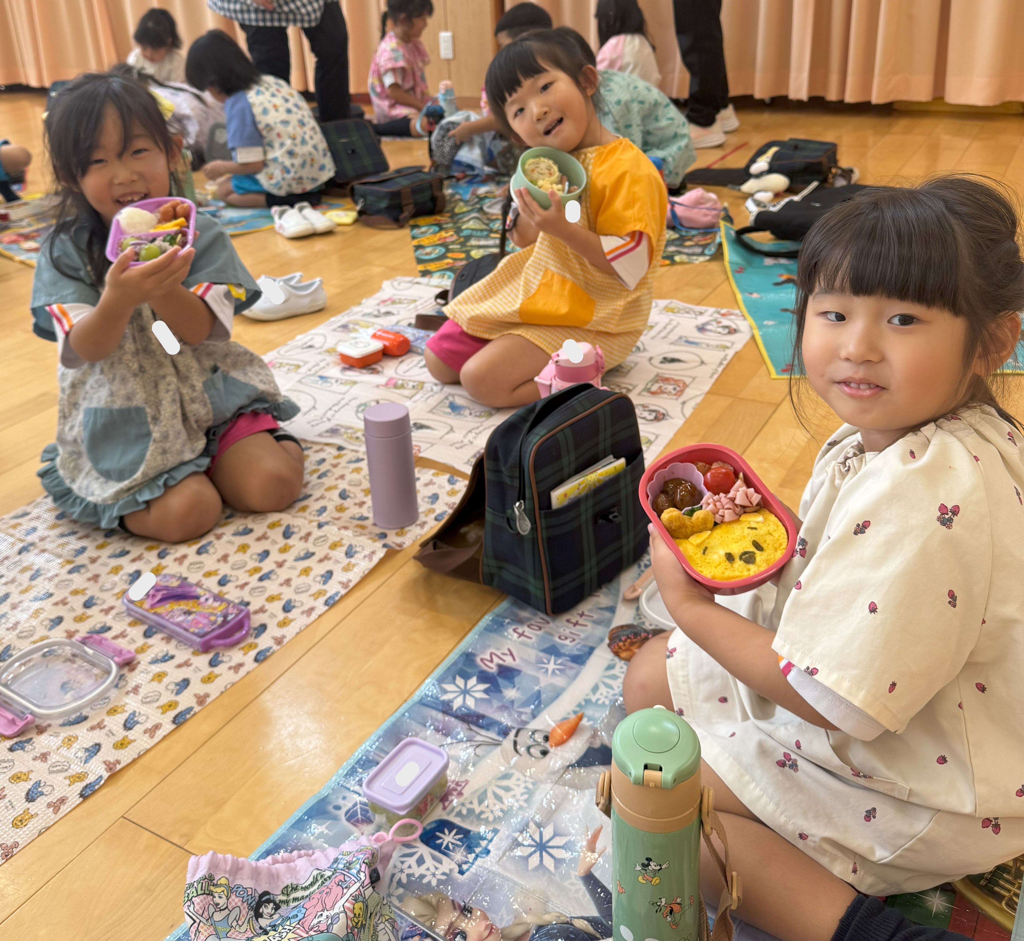 幼稚園部では毎年秋に紫雲寺記念公園へ園外保育に出掛けています。年長組さんと年少組さんは幸いにもお天気に恵まれ、公園で思いっきり遊び、お家の方の手作り弁当を食べてくることができました😋年中組さんは残念ながら雨模様☔となってしまいましたが、代わりに遊戯室にレジャーシートを広げて、みんなでお弁当を食べました✨