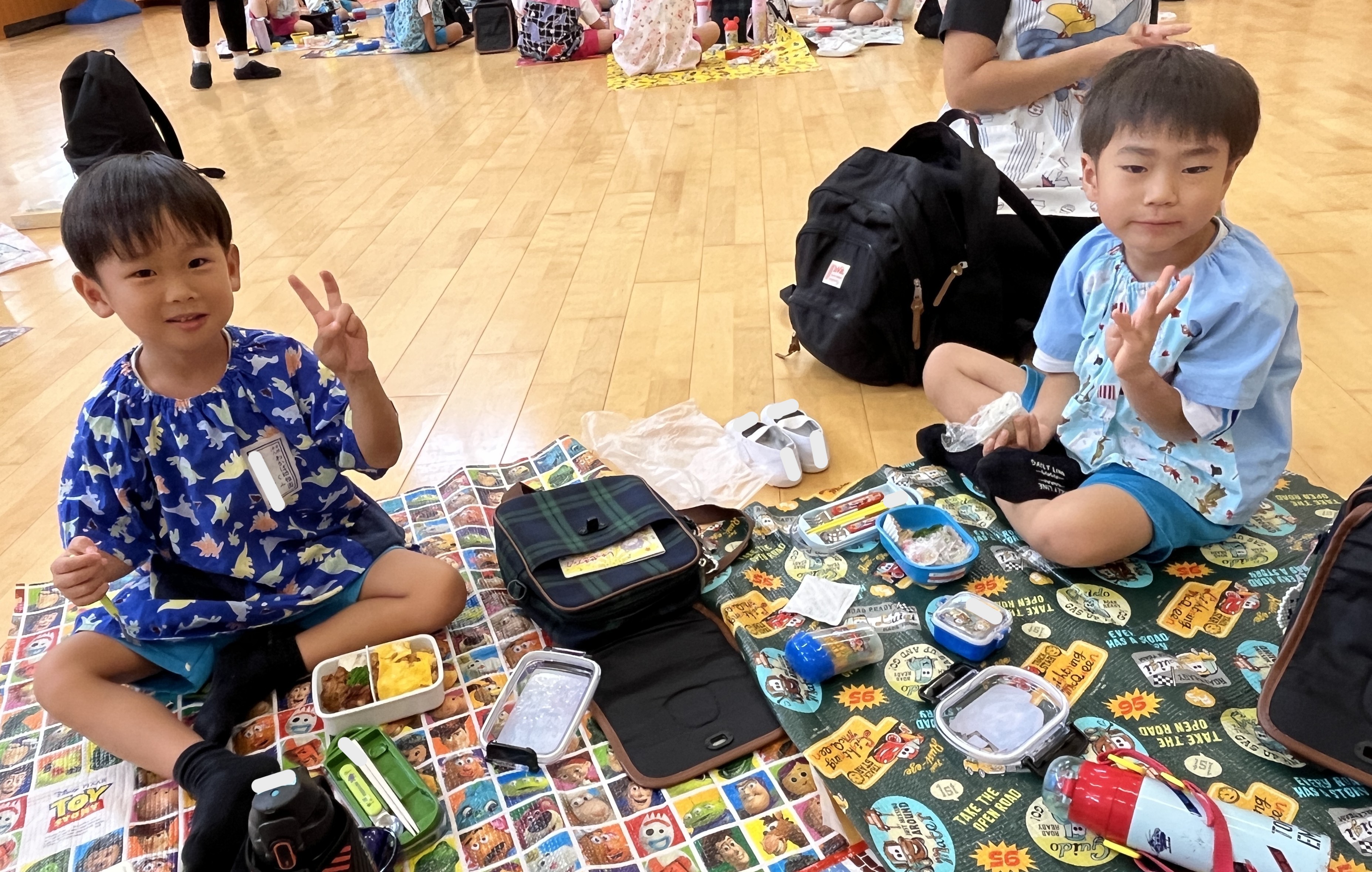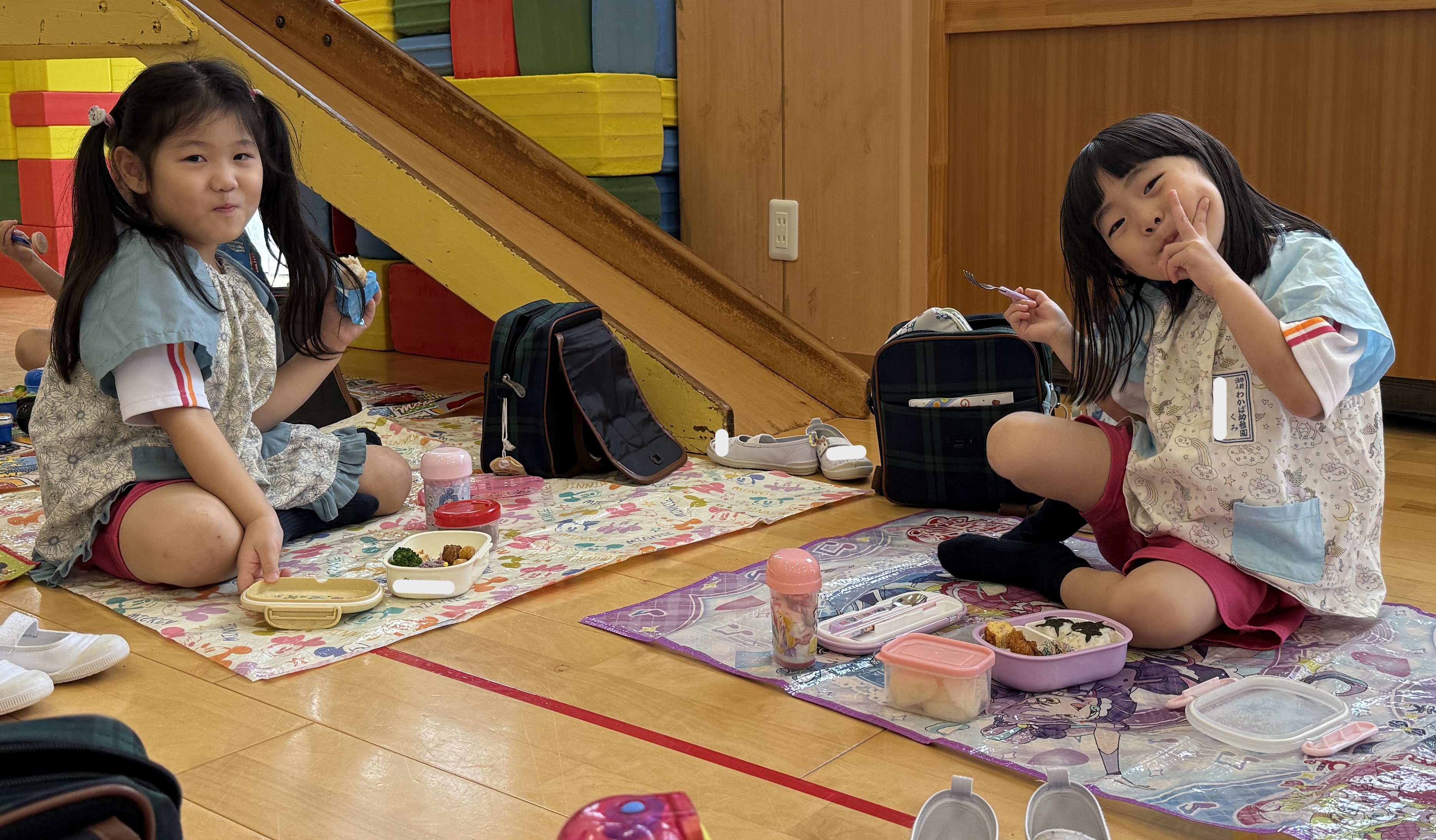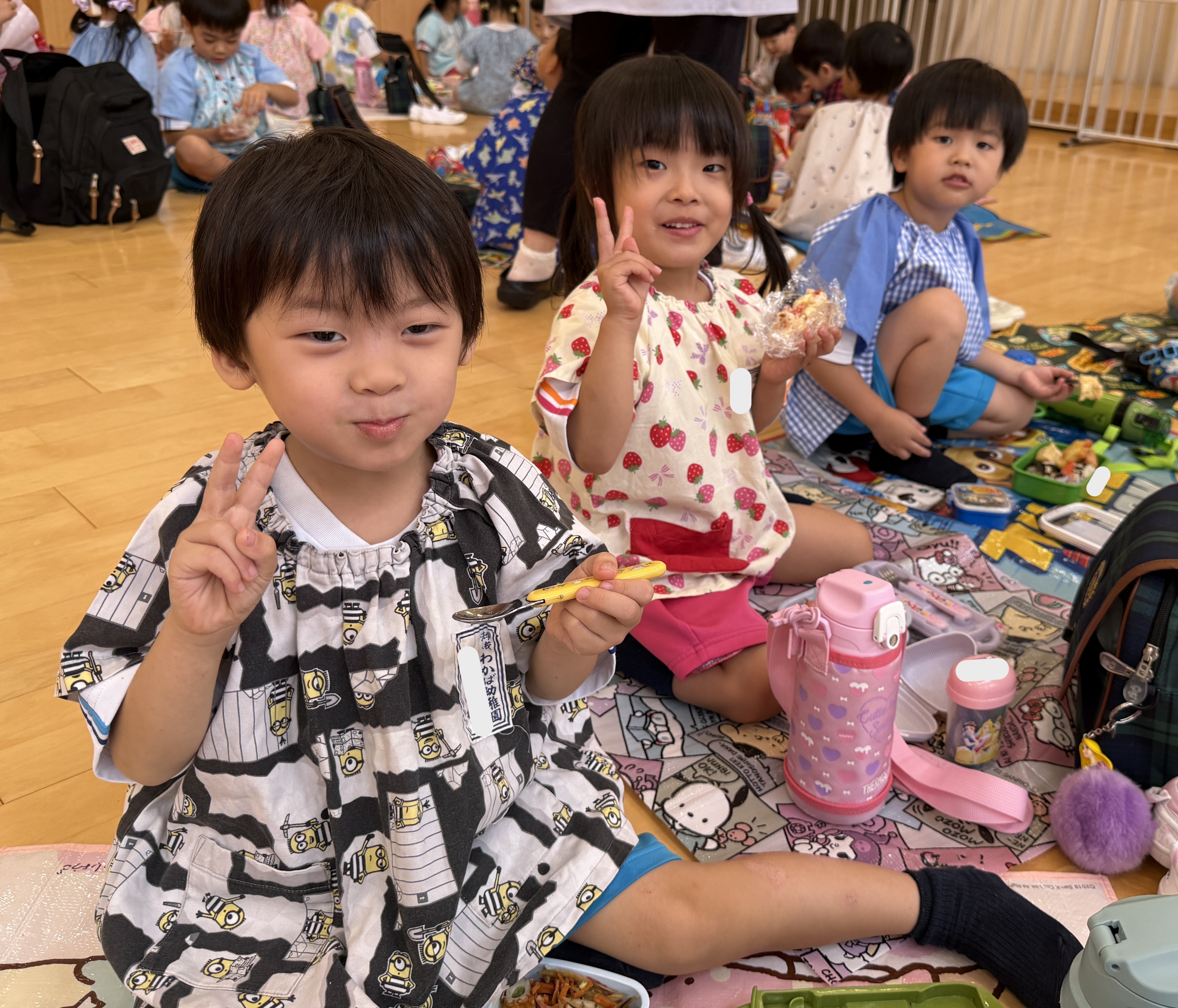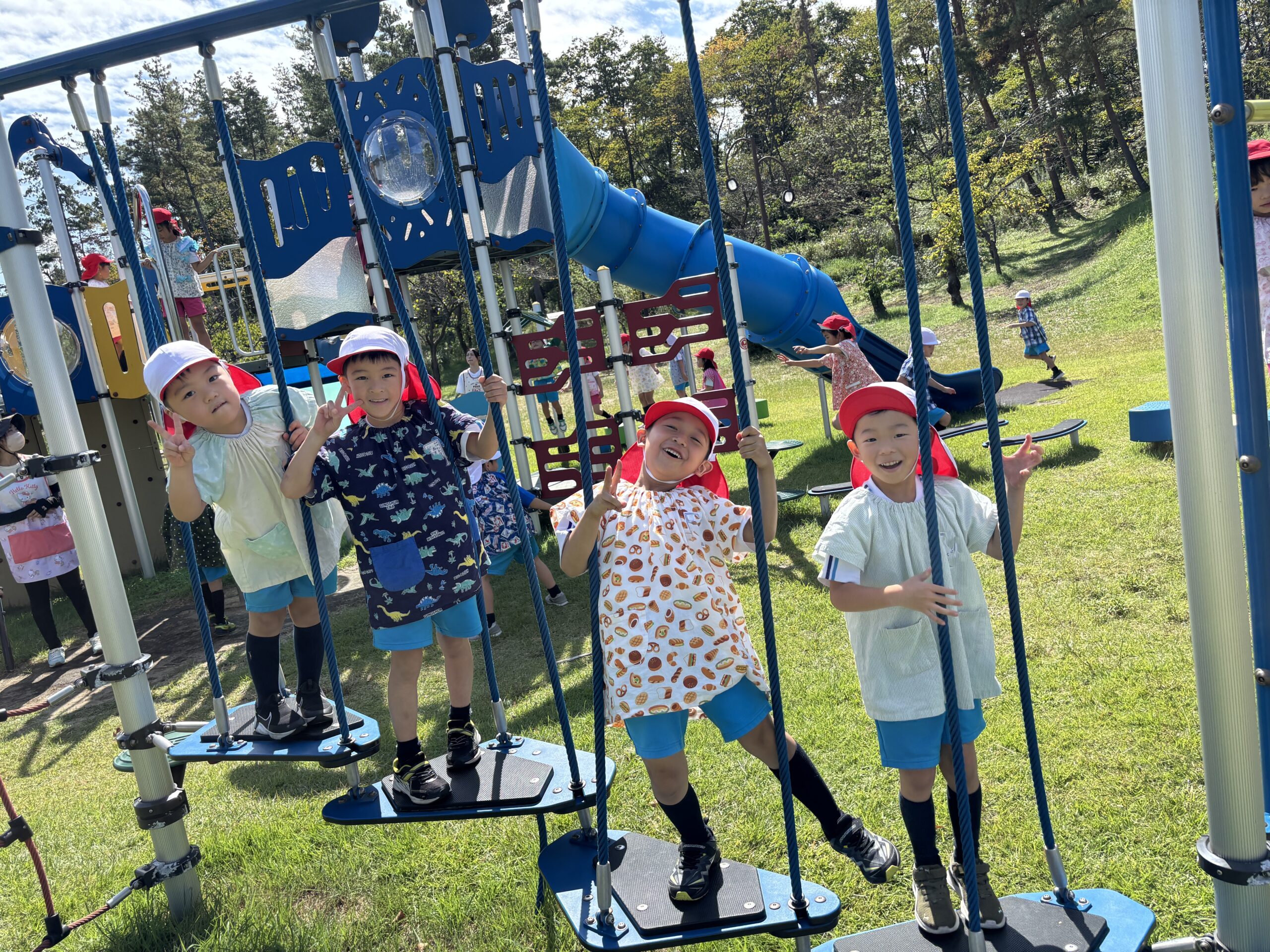 幼稚園部では毎年秋に紫雲寺記念公園へ園外保育に出掛けています。年長組さんと年少組さんは幸いにもお天気に恵まれ、公園で思いっきり遊び、お家の方の手作り弁当を食べてくることができました😋年中組さんは残念ながら雨模様☔となってしまいましたが、代わりに遊戯室にレジャーシートを広げて、みんなでお弁当を食べました✨
